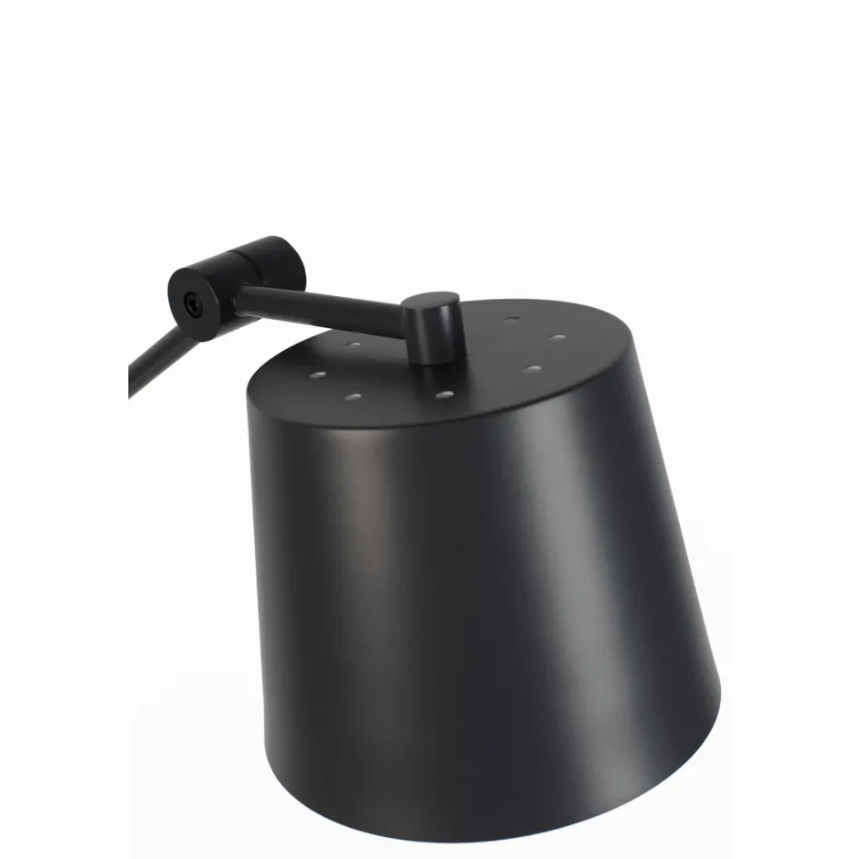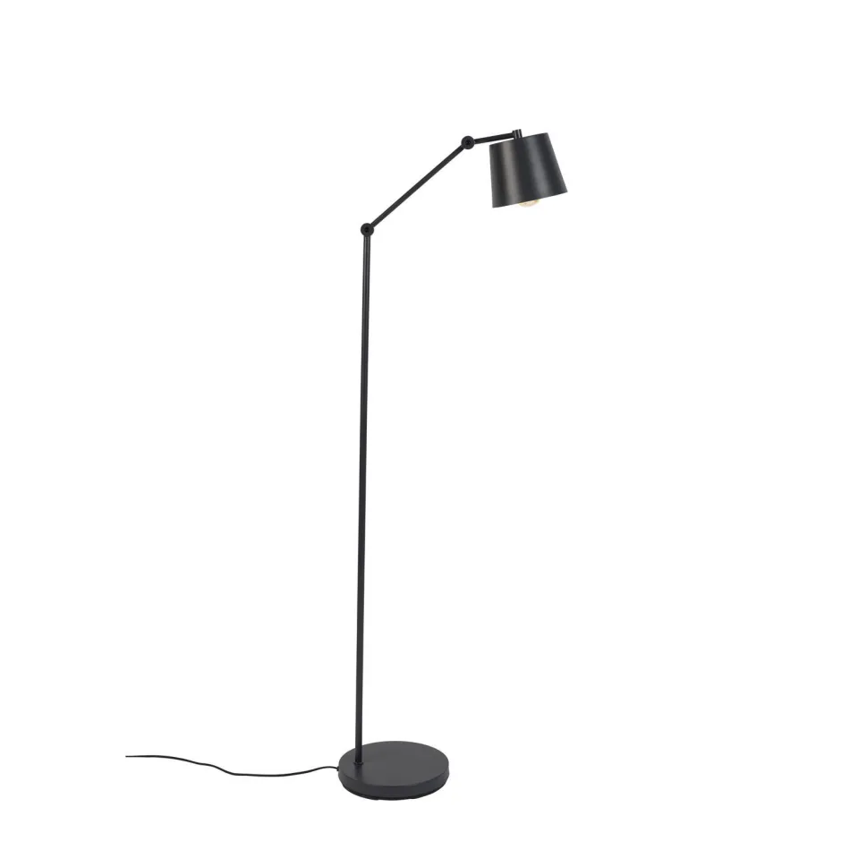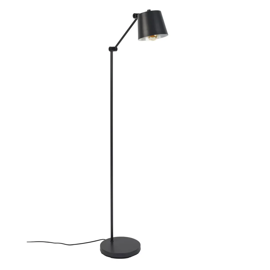 Vloerlamp Hajo Is Gemaakt Van Zwart Metaal En De Binnenkant Van Het Lampenkapje Is Wit Afgewerkt.