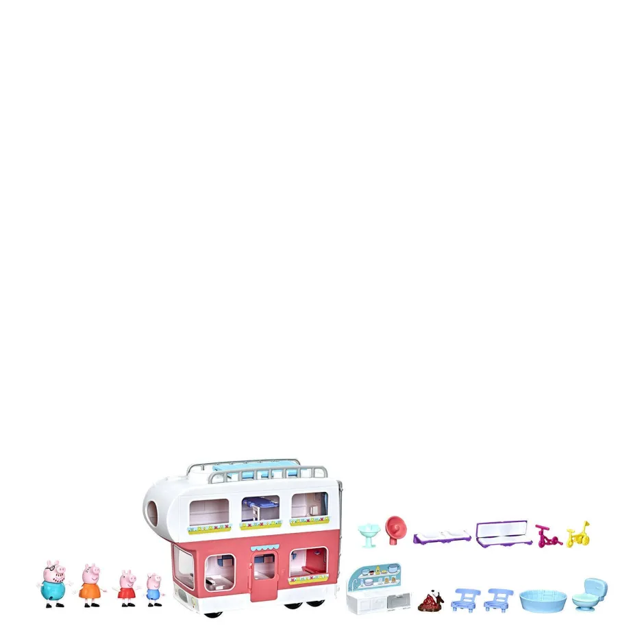 Kinderen Vanaf 3 Jaar Zullen Dolgraag Spelen Dat Ze Op Vakantie Zijn Met Peppa En Haar Familie In Peppa’S Speelgoedgezinscamper! Ze Kunnen Zich Voorstellen Dat Ze Samen Met Peppa Onderweg Zijn Terwijl Ze De Camper In Voertuigmodus Voortbewegen. Druk Op Het Stuur Om Muziek Te Horen Van De Peppa Pig-Serie En Zinnetjes Zoals “Are We Nearly There Yet?” (Zijn We Er Bijna?). Wanneer Het Moment Is Aangebroken Om Te ‘Kamperen’, Kan Het Voertuig Worden Omgevormd Tot Een Camper Met Meerdere Verdiepingen.