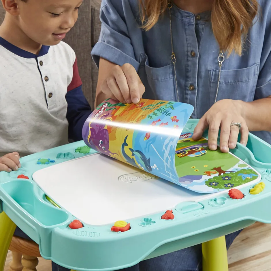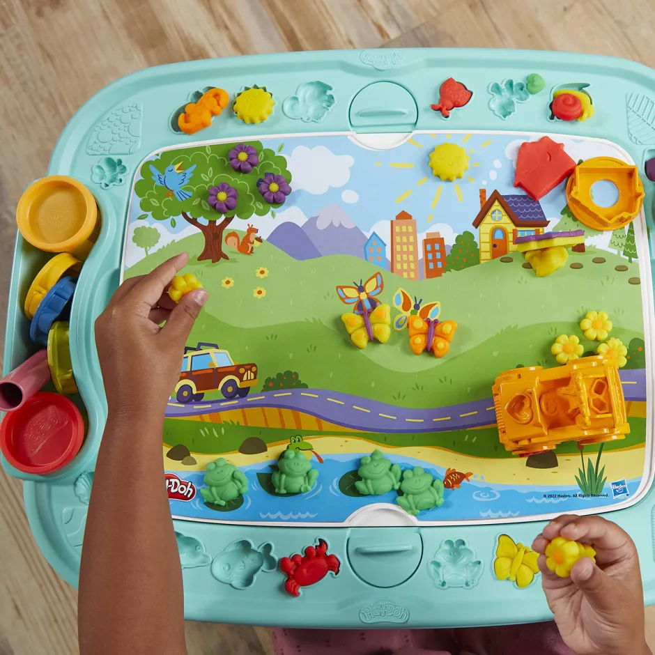 Geef Kinderen Hun Eigen Speelruimte Om Hun Verbeelding De Vrije Loop Te Laten, Met Het 2-In-1 Creatief Starters Station! Knutselen Voor Kinderen Wordt Nog Creatiever Met Deze Play-Doh-Activiteitentafel. Speel Op Allerlei Manieren Met De 15 Play-Doh-Accessoires En 6 Kleuren Boetseerklei. De Activiteitentafel Heeft 2 Verschillende Kanten, Zodat Er Nog Meer Te Onderzoeken Valt Voor De Kinderen! De Vlakke Kant Is Perfect Om Creatief Bezig Te Zijn Op De Speelmat, Terwijl De 3D-Kant Hun Verbeelding Nog Meer Stimuleert Met De Watervalmaker, En Voertuig- En Dierengereedschap. Eenvoudig Opruimen En Schoonmaken, Wat Dit Leuke Kinderspeelgoed Ongetwijfeld Ook Populair Maakt Bij Volwassenen. Peuterspeelgoed Zoals Deze Play-Doh-Starterset Is Een Geweldig Cadeau Voor Meisjes En Jongens Vanaf 3 Jaar. Hasbro, Play-Doh En Alle Bijbehorende Kenmerken Zijn Handelsmerken Van Hasbro.