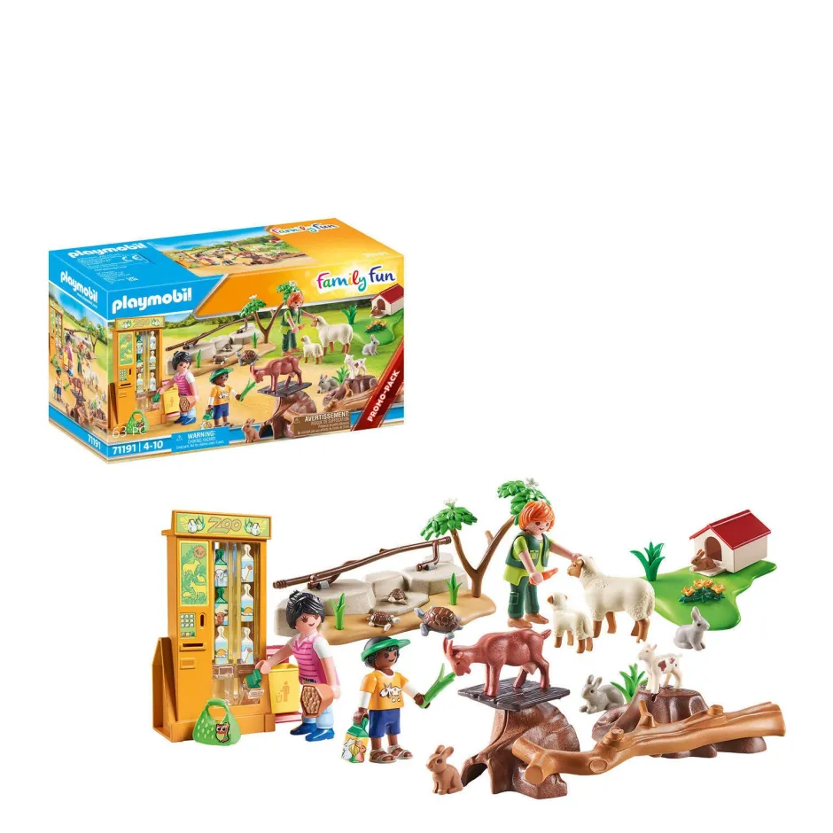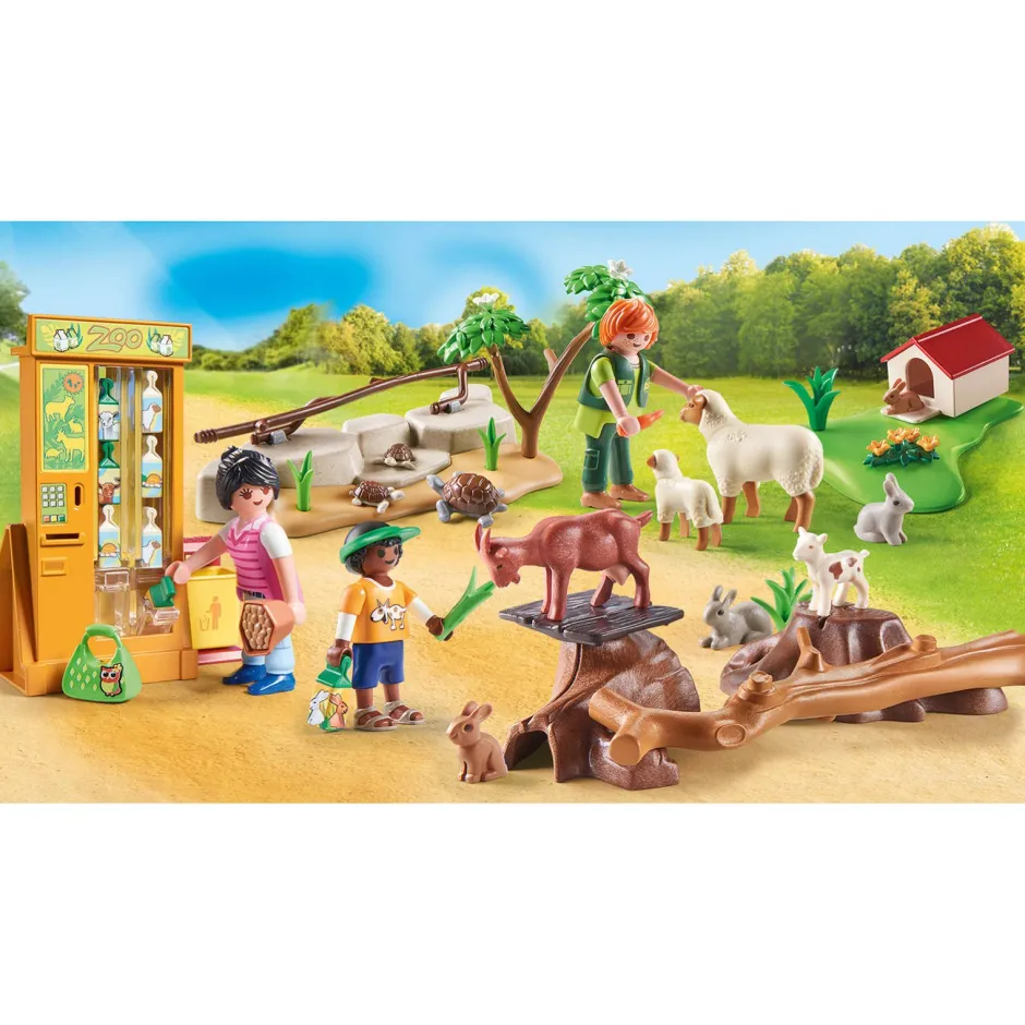In De Avonturenkinderboerderij Van Playmobil Kunnen Kleine Dierenliefhebbers Heel Dicht Bij Hun Favoriete Dieren Komen. Eerst Kopen De Bezoekers Voer Uit De Automaat, Daarna Gaan Ze Het Verblijf In Om De Dieren Te Voeren En Te Aaien. De Geiten En Schapen Zijn Opgewonden En Springen Opgewonden In Het Rond. Natuurlijk Worden Ook De Schildpadden En Konijnen Niet Vergeten. Een Liefdevol Ontworpen Speelset Voor Kinderen Die Van Dieren Houden. De Set Bevat Drie Playmobil-Figuren, Een Geit Met Een Kind, Een Schaap Met Een Lam, Twee Konijnen Met Baby’S, Een Schildpad, Een Voerbak, Acht Voerzakken En Vele Andere Leuke Extra’S. De Voerautomaat Is Functioneel En Altijd Bij Te Vullen Met Dierenvoeding. De Speelset Is Ideaal Om De Grote Avonturendierentuin 71190 Uit Te Breiden.