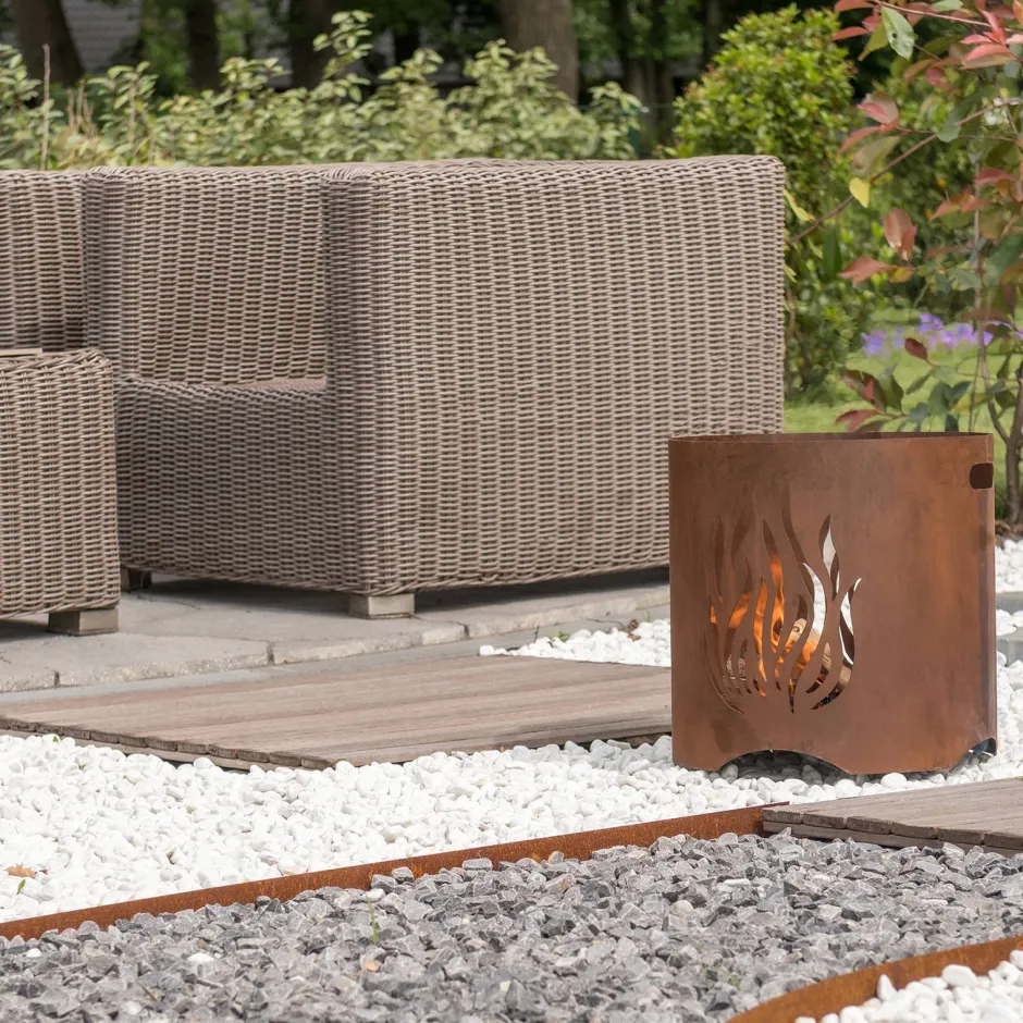 Deze Robuuste Vuurschaal Kiruna Uit Het Assortiment Van Redfire Geeft Een Unieke Sfeer Aan Je Tuin Of Terras. Een Praktische Ruime Vuurhaard, Die Met Zijn Cortenlook Geschikt Is Voor Vrijwel Elke Tuinstijl. De Stoere Roestkleur En De Vlamvormige Uitsnedes Op De Kiruna Zorgen Voor Een Unieke Combinatie. Het Bijzondere Is Dat Deze Vuurhaard Nog Handgemaakt Ook Is.