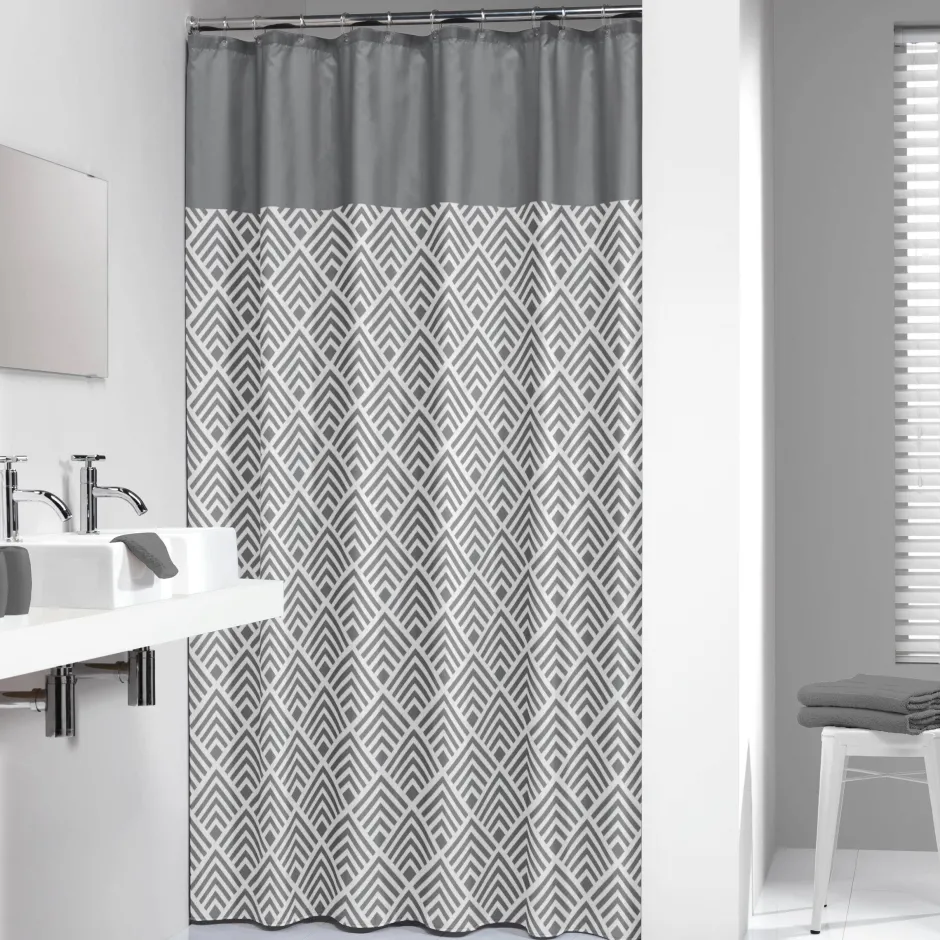 Grafische Prints Zijn De Trend Van Nu, Dit Moderne Angoli Douchegordijn Met Een Grijze Grafische Print Zorgt Ervoor Dat Je Badkamer Weer Helemaal Van Nu Wordt. Een Douchegordijn Van Sealskin Zorgt Ervoor Dat Je Badkamer Goed Droog Blijft Tijdens Het Douchen En Geeft Je Badkamer Een Goede Sfeer Waarin Douchen Elke Dag Weer Een Genot Wordt. Dit Gordijn Is Voorzien Van Een Verzwaarde Onderzoom.