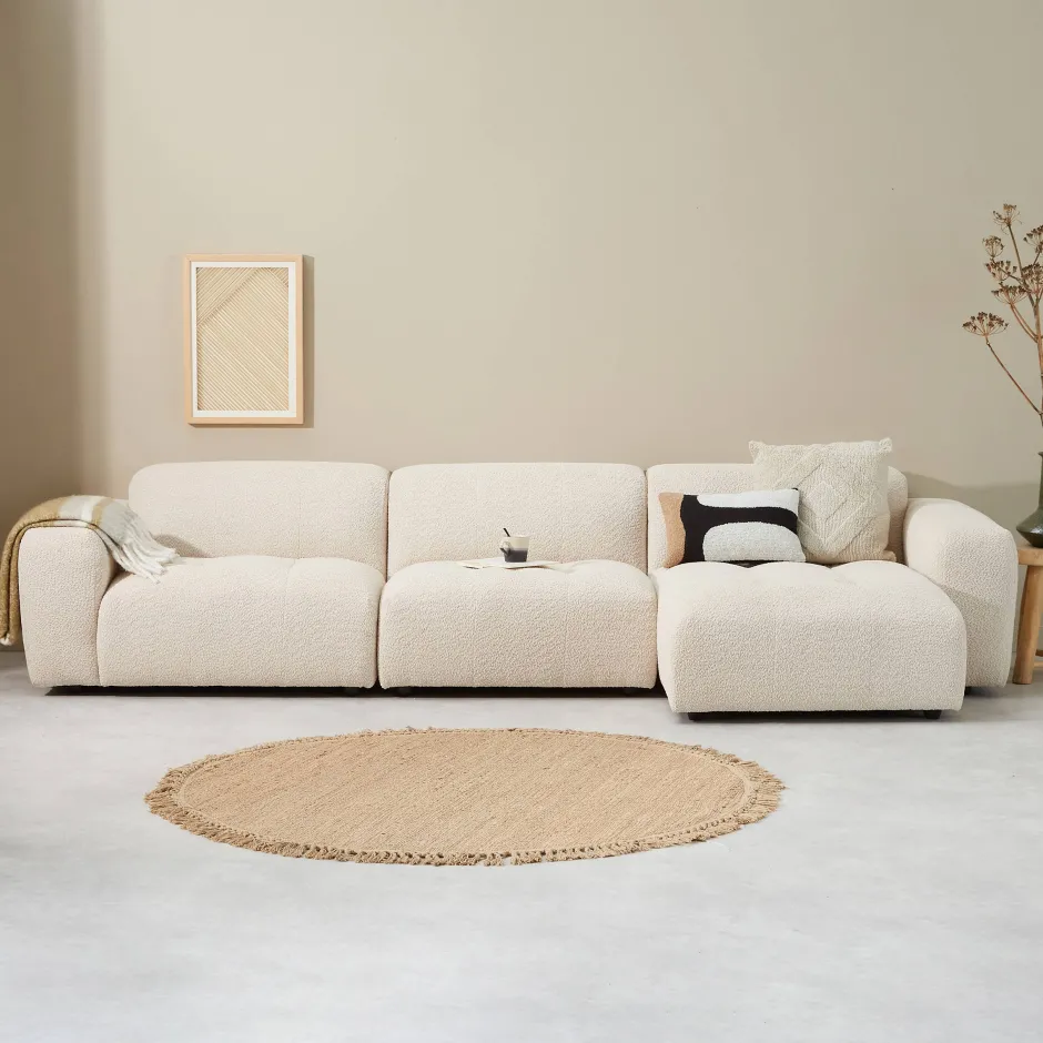 Met De Amara Modulaire Banken Serie Zijn Er Eindeloos Veel Mogelijkheden! De Elementen Van Deze Bank Zijn Op Verschillende Manieren Samen Te Stellen. Deze 4-Zits Hoekbank Is Van Het Merk Studio Livit En Bestaat Uit Drie Elementen. Een Royale Hoekbank Met Plek Voor Iedereen Of Juist Languit In Je Eentje. De Amara 4-Zits Hoekbank Is Bekleed In Een Ecru Kleurige Boucle Stof. Dit Maakt De Bank Stoer En Zacht Tegelijk. De Amara Past In Iedere Interieurstijl. Niet Helemaal Het Juiste Formaat? Bekijk Dan Eens De Andere Opstellingen Of Kies De Losse Elementen Van Amara En Stel Je Eigen Bank Samen!