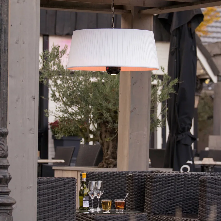 Deze Witte Artix Hw Terrasverwarmer Van Het Merk Sunred Is Een Heater Met Een Moderne Lampenkap. Hij Zorgt Niet Alleen Voor Een Aangename Temperatuur, Maar Geeft Ook Een Fijn Sfeerlicht (Led) En Een Moderne Uitstraling. De Lampenkap Is Uv- En Weerbestendig En Past Thuis In Vele Verschillende Stijlen. Je Bedient De Heater Eenvoudig Met Een Afstandsbediening.