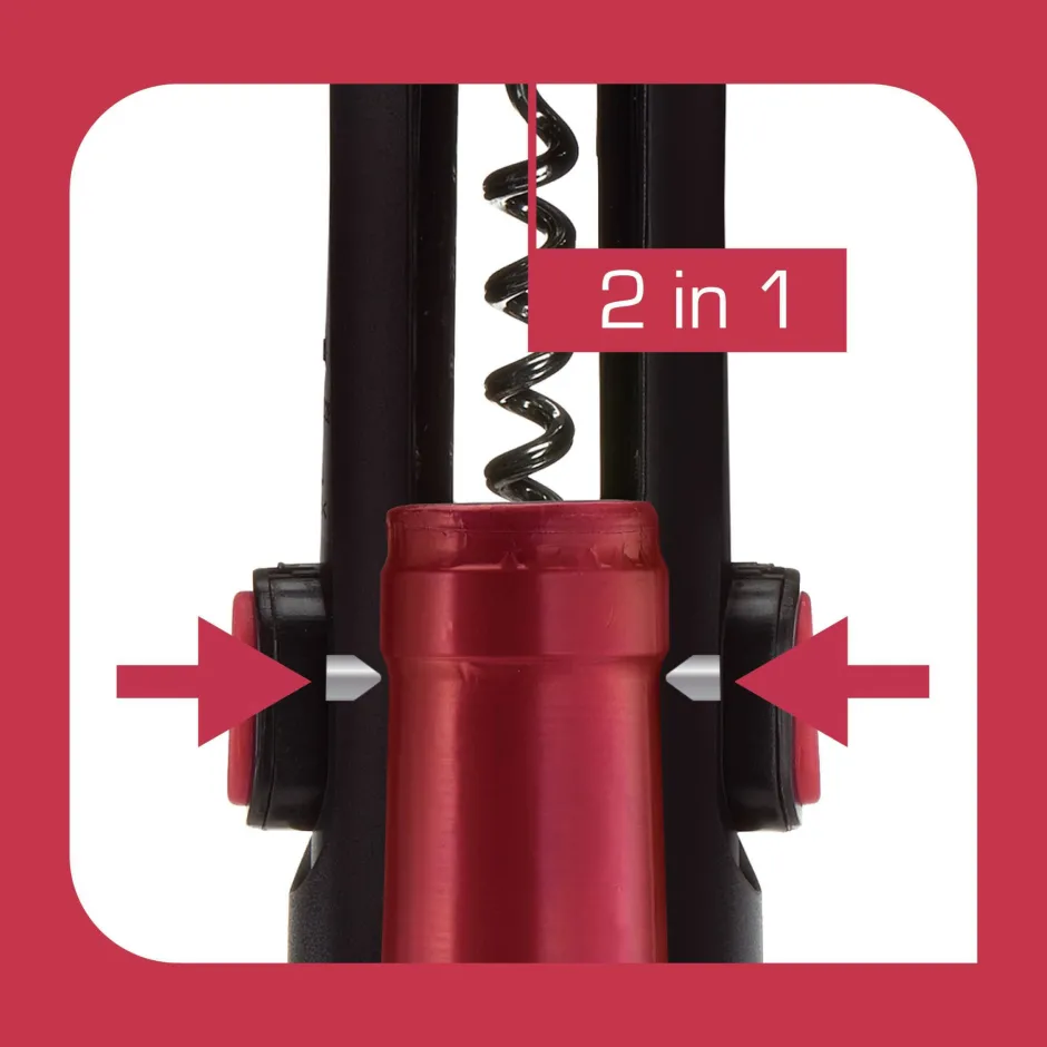 Klassieke Kurkentrekker Met Een Geintegreerde Foliesnijder Waarmee Je In Milliseconden Door De Folie Snijdt En Met Een Hefboomsysteem Om De Kurk Gemakkelijk Te Verwijderen.