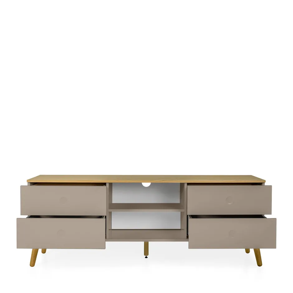 Dit Tv-Meubel Behoort Tot De Dot Serie Van Het Merk Tenzo. De Serie Heeft Een Scandinavische Uitstraling En Straalt Veel Rust Uit. Tv-Meubel Dot Bestaat Uit Vier Lades, Die Allemaal Zijn Voorzien Van Een Druk-Open Systeem. Hierdoor Heb Je Geen Handgrepen, Maar Een Eenvoudig Design. De Achterkant Van Het Meubel Heeft Ruimte Om Op Een Nette Manier De Kabels Van Je Televisie Weg Te Werken. Het Meubel Is Verkrijgbaar In Drie Verschillende Kleuren.
