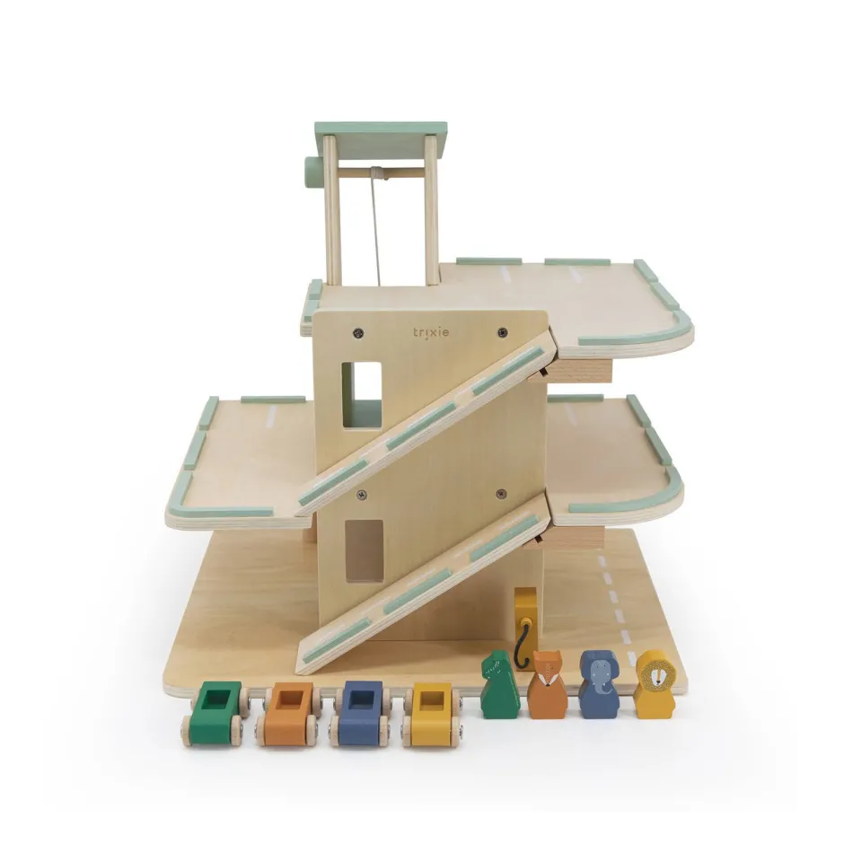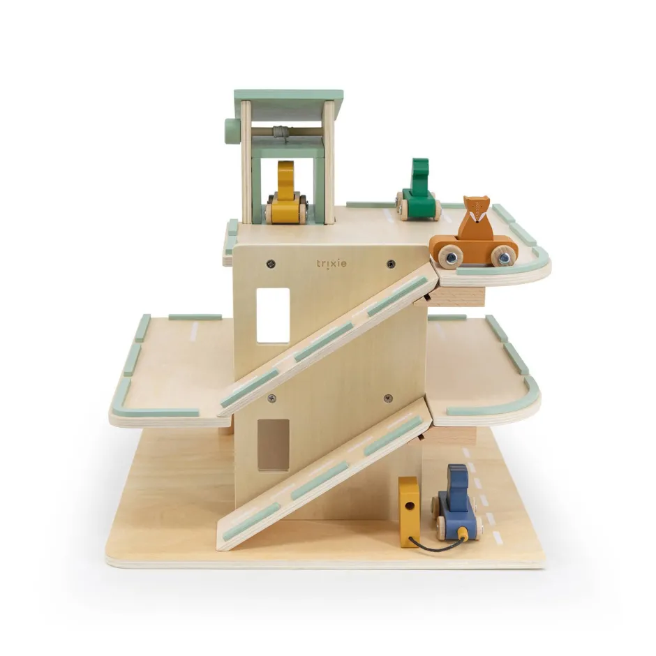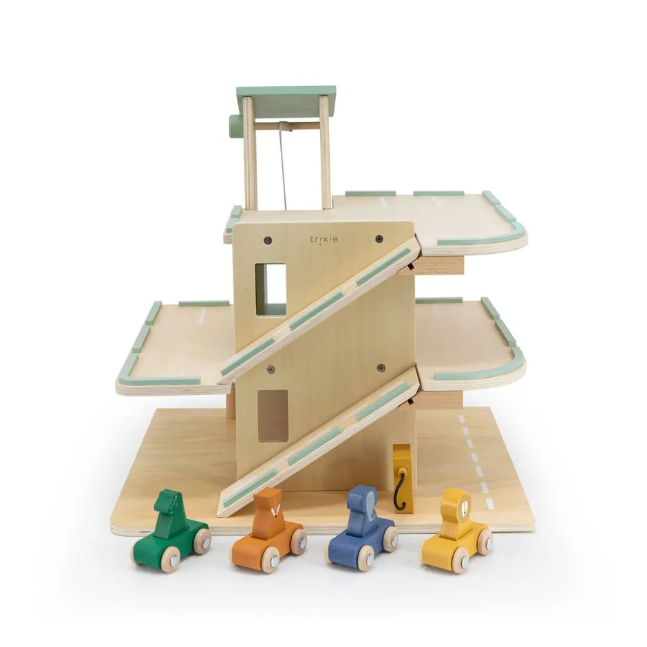 Tut Tuut! Onze Dierenvrienden Zijn Op Zoek Naar Een Plek Om Hun Auto Te Parkeren. Met De Lift Gaan Ze Naar Het Dak Van De Garage. Er Zijn Ook Schuifdeuren, Een Slagboom, Een Tankstation En Garagebox Met Poort. Al Deze Elementen Bevorderen Het Ruimtelijk Inzicht, De Fijne Motoriek En De Grenzeloze Fantasie Van Kinderen. De Garage Wordt Geleverd 4 Auto’S En Dierenbestuurders. De Garage En De Accessoires Zijn Gemaakt Van 100% Fsc ® Gecertificeerd Hout. Alle Verven Zijn Op Waterbasis En Veilig Voor Baby’S.
