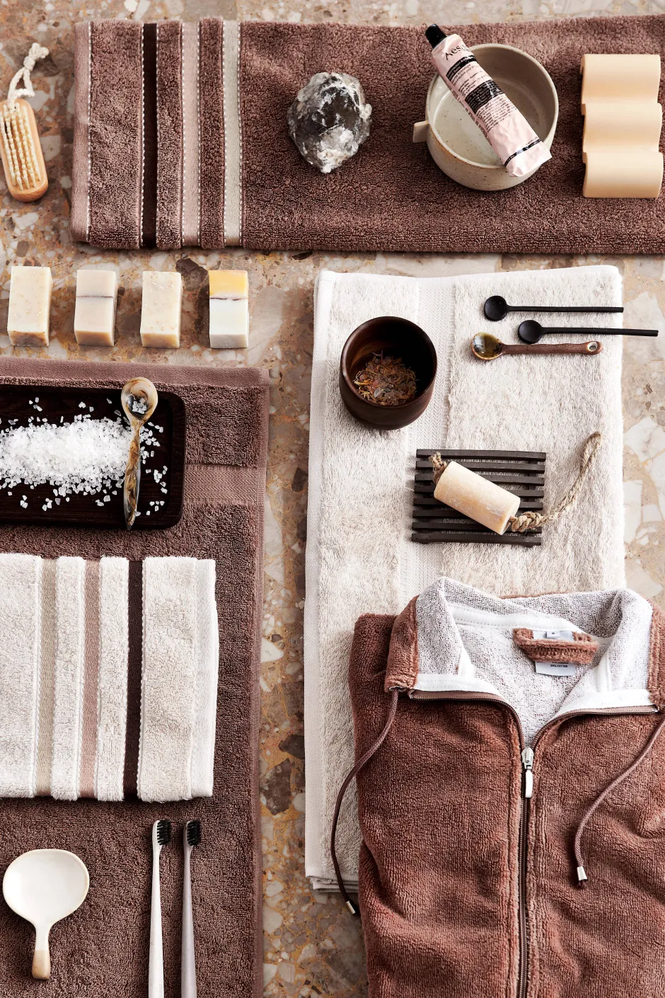 Prestige Lines Handdoeken Hebben Aan Het Uiteinde Drie Gekleurde Lijnen In Verschillende Tinten Met Een Extra Sierstiksel, Die Ook Aan De Boven En Onderzijde Van De Handdoeken Zitten. Deze Serie Bestaat Uit Verschillende Maten Handdoeken En Een Washand.