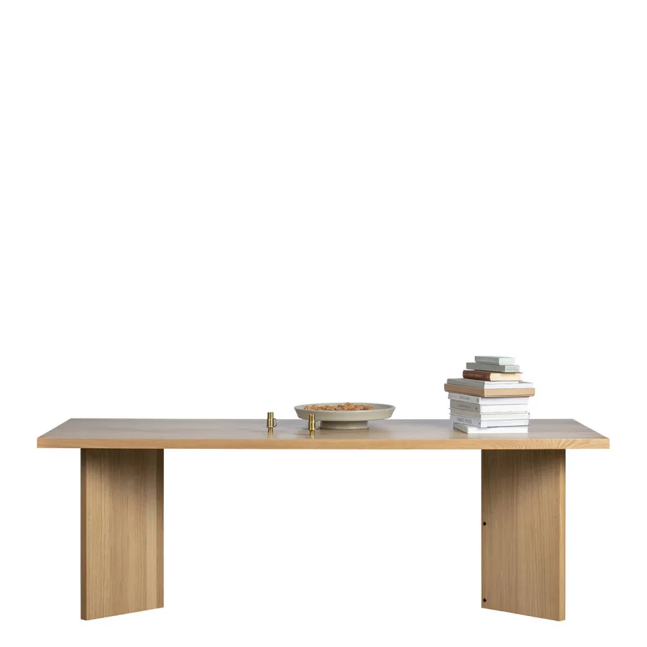 Angle Is Een Eigentijdse Eettafel Met Een Originele Poot Uit De Collectie Van Het Nederlandse Merk Vtwonen. De Eettafel Is Vervaardigd Uit Eiken Fineer Met Een Naturel Kleurige Finish. De Poot Heeft Een Originele Vorm, Dit Geeft Een Verrassend Effect Aan De Eethoek. De Tafel Is Afgewerkt Met Een Matte Blanke Lak Om Het Hout Te Beschermen Tegen Vlekken.