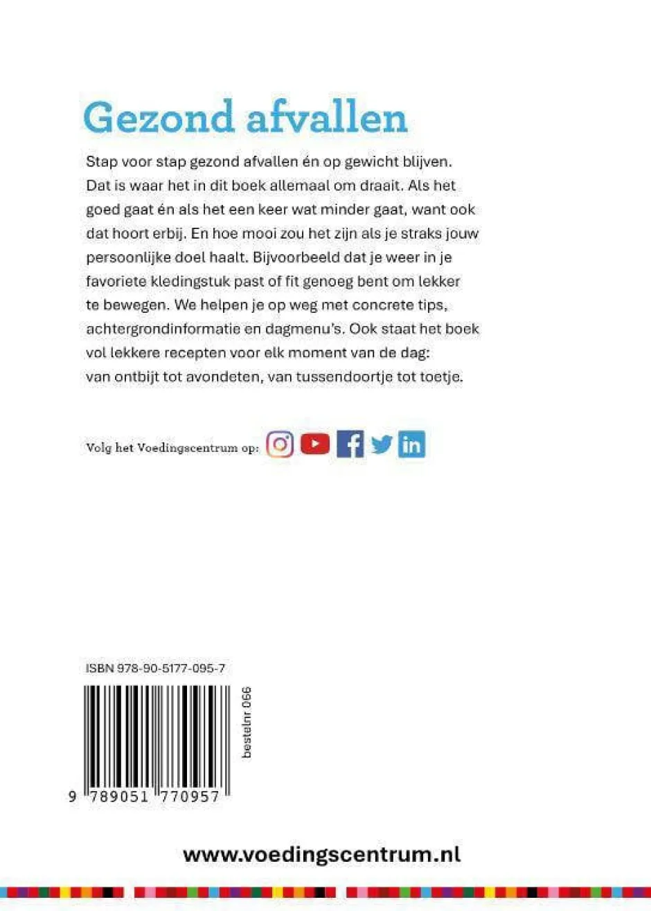 Stap Voor Stap Gezond Afvallen En Op Gewicht Blijven. Dat Is Waar Het In Dit Boek Van Het Voedingscentrum Allemaal Om Draait. Als Het Goed Gaat En Als Het Een Keer Wat Minder Gaat, Want Ook Dat Hoort Erbij. En Hoe Mooi Zou Het Zijn Als Je Straks Jouw Persoonlijke Doel Haalt. Bijvoorbeeld Dat Je Weer In Je Favoriete Kledingstuk Past Of Fit Genoeg Bent Om Lekker Te Bewegen. We Helpen Je Op Weg Met Concrete Tips, Achtergrondinformatie En Dagmenu’S. Ook Staat Het Boek Vol Lekkere Recepten Voor Elk Moment Van De Dag: Van Ontbijt Tot Avondeten, Van Tussendoortje Tot Toetje.