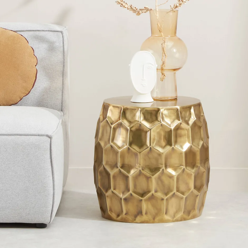 Gedurfd En Gewaagd! Dat Is Dit Opvallende Bijzettafeltje Van Ons Merk Wehkamp Home. Het Tafeltje Is Goud Van Kleur En Heeft Een Ton Vorm. De Bijzettafel Heeft Een Honingraat Patroon, Uitgevoerd In 100% Staal. Door De Lichtinval Krijgt Het Tafeltje Een Bijzonder Effect. Ook Kun Je Het Tafeltje Ontzettend Goed Combineren Met De Andere Bijzettafels Uit De Wehkamp Home Collectie.