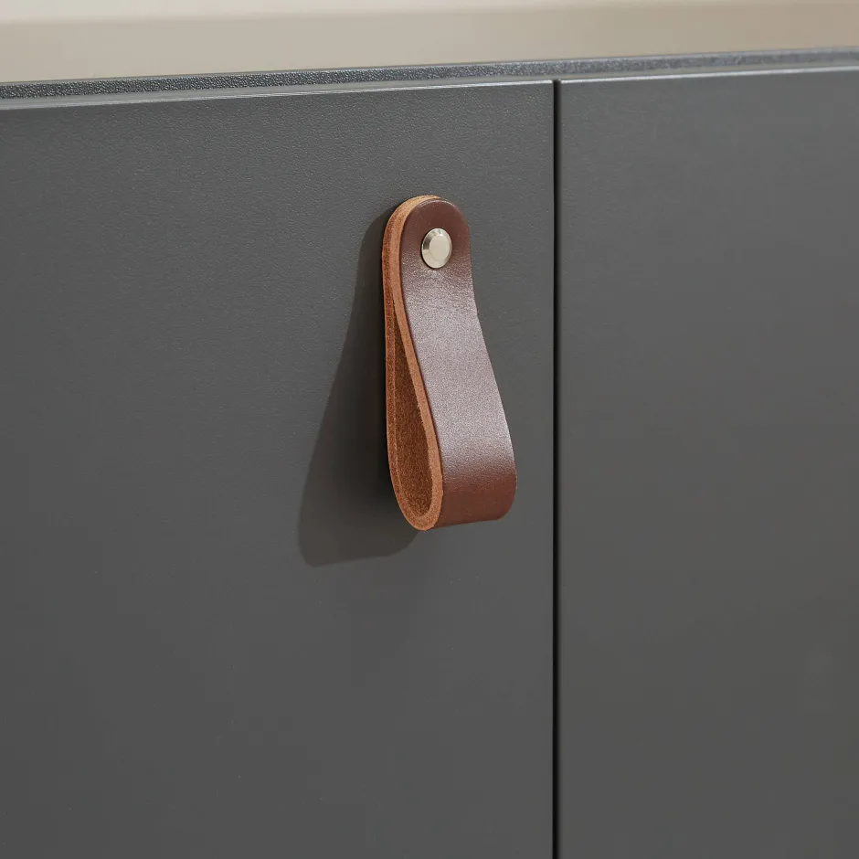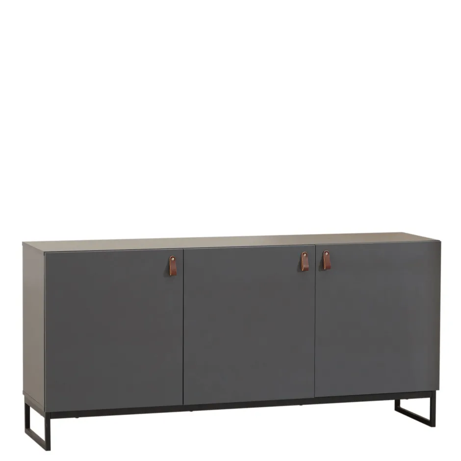 Het Dressoir Is Afgewerkt In Het Antraciet Met Een Zwart Metalen Onderstel. Elk Deurtje Is Voorzien Van Een Mooi Leren Handvat. Dit Geeft Het Dressoir Een Strakke, Minimalistische Look. Dit Dressoir Is Ook Verkrijgbaar In De Kleur Wit.