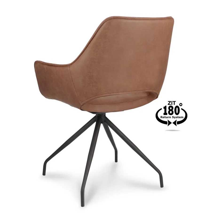 Eetkamerstoel Naomi Is Van Het Merk Wehkamp Home En Voorzien Van Met Een 180 Graden Return-System. Ideaal! Want Zo Kun Je Makkelijk In En Uitstappen Als Je Aan De Eetkamertafel Zit. Maar De Naomi Eetkamerstoel Zou Je Ook Bij Je Bureau Kunnen Plaatsen. De Terugdraaifunctie Zorgt Er Namelijk Voor Dat De Kuip Weer Mooi Terugdraait Naar De Oorspronkelijke Stand. Eetkamerstoel Naomi Is Bekleed Met Microleder En Heeft Een Zwart Metalen Onderstel. Door Het Strakke Design Past Naomi In Vele Woonstijlen. Naast Deze Kleur Is De Naomi Eetkamerstoel In Nog 4 Kleuren Verkrijgbaar. Je Kunt Dus Gaan Voor Meerdere Stoelen In Dezelfde Kleur Of Mixen En Matchen! We Advsieren Je Goed De Onderstaande Afmetingen Te Lezen, Zodat Je Zeker Weet Dat De Stoel Perfect Past Bij Jouw Eethoek.