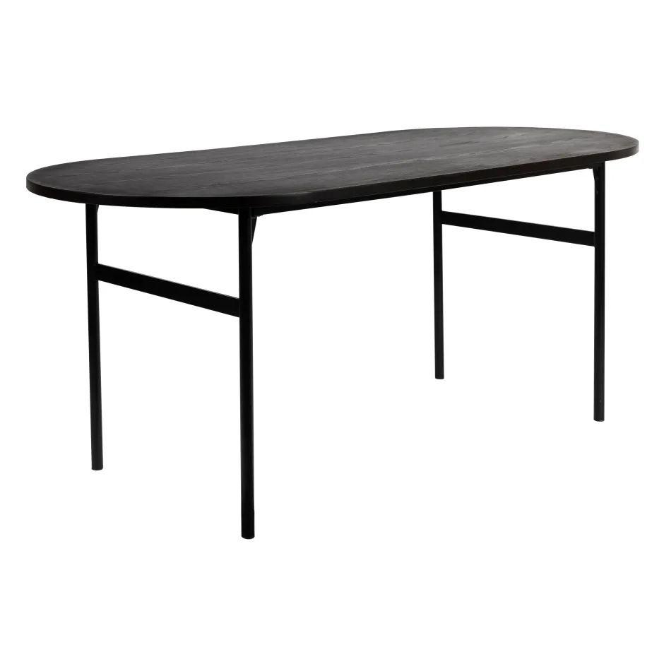 De Marcio Eettafel Is Een Echt Voorbeeld Van Minimalistische Elegantie. Gemaakt Van Een Slanke Ovale Vorm En Een Stevig Metalen Frame, Biedt Deze Tafel Een Perfecte Balans Tussen Sterkte En Stijl. De Houten Textuur Op Het Blad Voegt Een Vleugje Natuurlijke Warmte Toe Aan Het Moderne Ontwerp. De Eettafel Marcio Is Verkrijgbaar In Een Strakke Zwarte Kleur En Past Moeiteloos In Elk Modern Interieur.