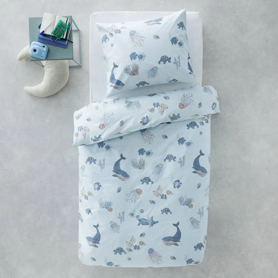 Dekbedovertrek Big Whale Is Van Het Merk Wehkamp Home. Het Overtrek Is Bedrukt Met Walvissen En Andere Mooie Zeedieren, Waardoor Hij Er Op Elke Kinderkamer Uit Springt! Dit Dekbedovertrek Is Gemaakt Van 100% Zacht En Soepel Katoen Met Een Treadcount Van 144Tc. Dit Betekent Dat Elke Inch 144 Draden Bevat. Hoe Hoger De Treadcount Hoe Dichter De Stof Geweven Is En Hoe Rijker De Stof Aanvoelt. Katoen Is Een Natuurlijk Product Dat Ademt En Goed Vocht Opneemt. Het Is In Totaal 200 Cm Lang En Heeft Een Handige Flap Om Het Overtrek In Te Stoppen. Het Kussensloop In Deze Set Is 60X70 Centimeter.
