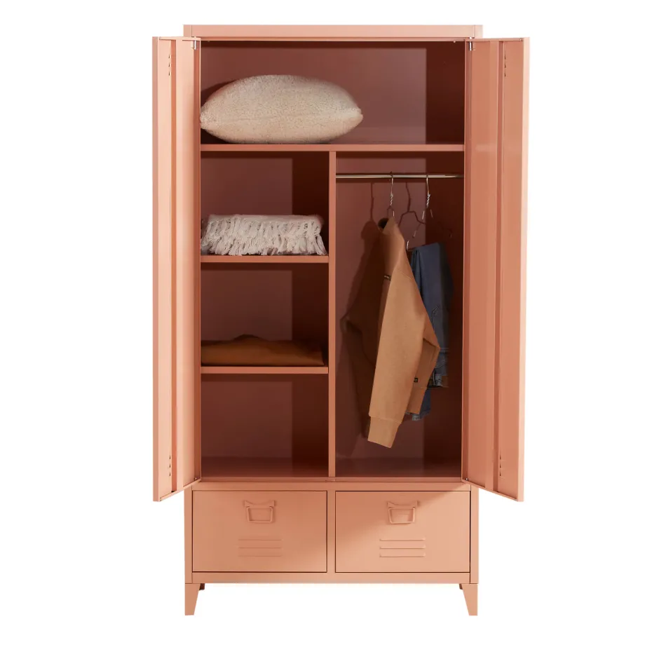 Op Zoek Naar Een Nieuwe Kledingkast? Dit Is Misschien Wel De Kledingkast Die Je Zoekt! De Jackson Is Volledig Gemaakt Van Gepoedercoat Staal En Is Erg Robuust. Dit Geeft De Kledingkast Een Stoere En Industriele Look. De Kledingkast Beschikt Over Drie Planken (2X Klein, 1X Groot), Een Gedeelte Voor Kledinghangers En Twee Lades Aan De Onderkant.