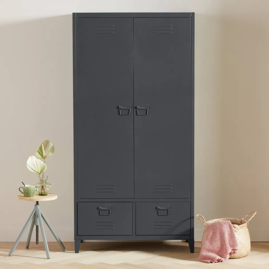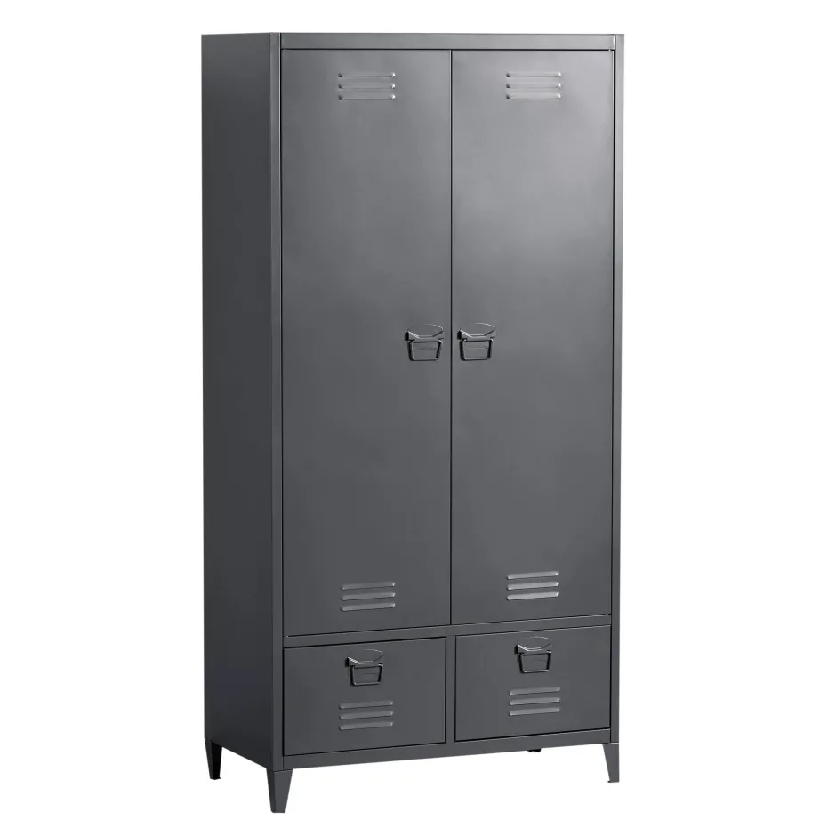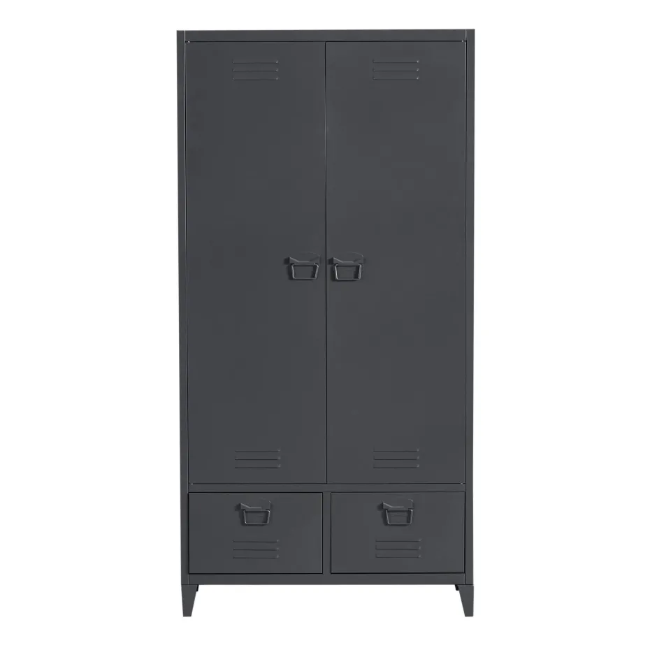 Op Zoek Naar Een Nieuwe Kledingkast? Dit Is Misschien Wel De Kledingkast Die Je Zoekt! De Jackson Is Volledig Gemaakt Van Gepoedercoat Staal En Is Erg Robuust. Dit Geeft De Kledingkast Een Stoere En Industriele Look. De Kledingkast Beschikt Over Drie Planken (2X Klein, 1X Groot), Een Gedeelte Voor Kledinghangers En Twee Lades Aan De Onderkant.