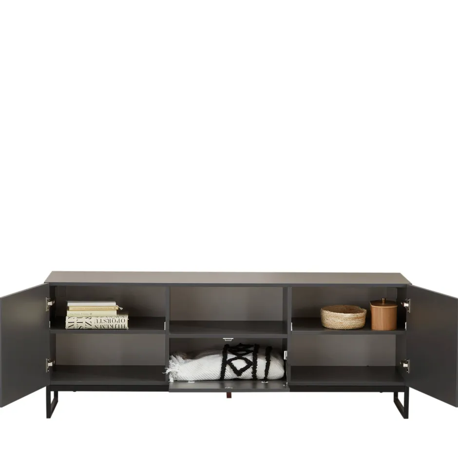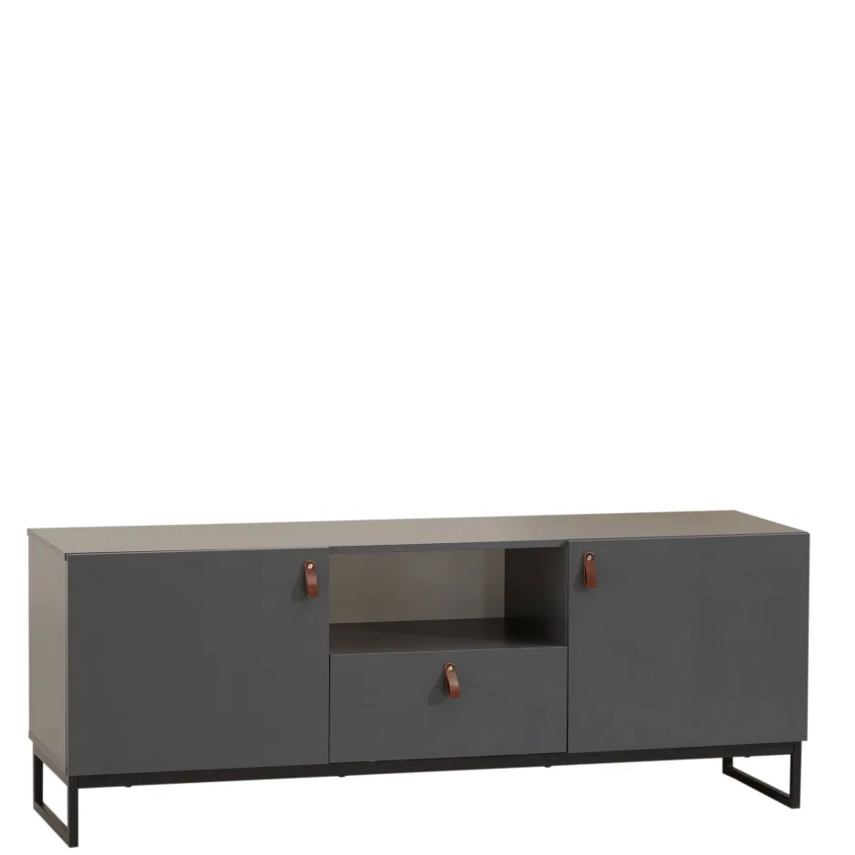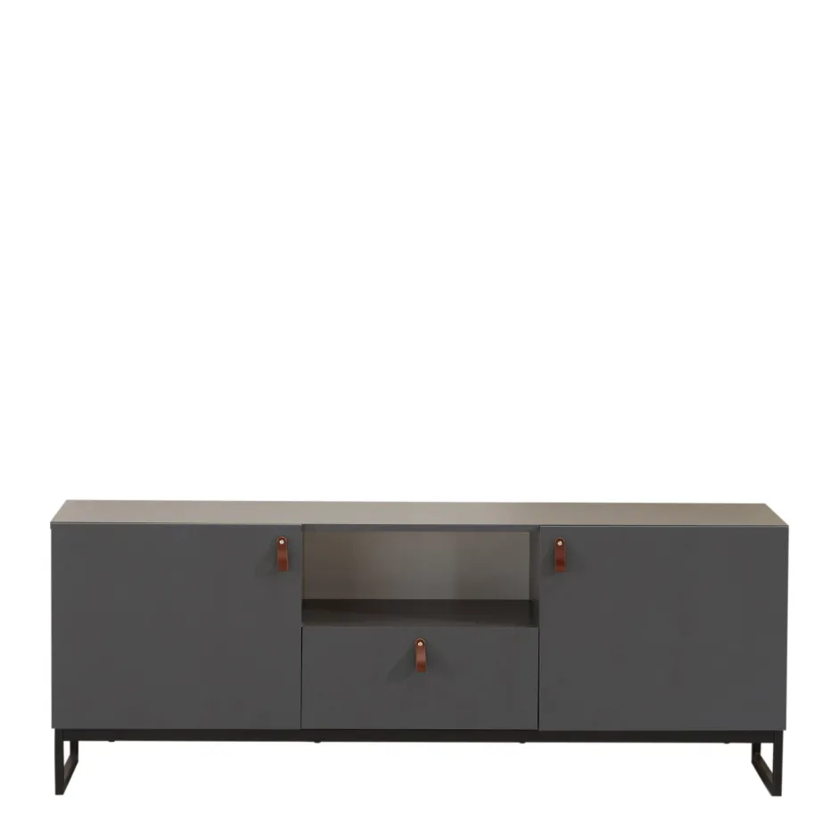 Het Tv-Meubel Is Afgewerkt In Het Antraciet Met Een Zwart Metalen Onderstel. Elk Deurtje Is Voorzien Van Een Mooi Leren Handvat. Dit Geeft Het Tv-Meubel Een Strakke, Minimalistische Look. Dit Tv-Meubel Is Ook Verkrijgbaar In De Kleur Wit.
