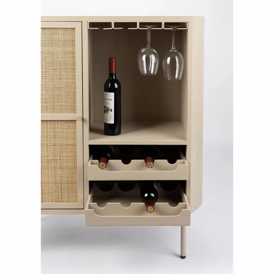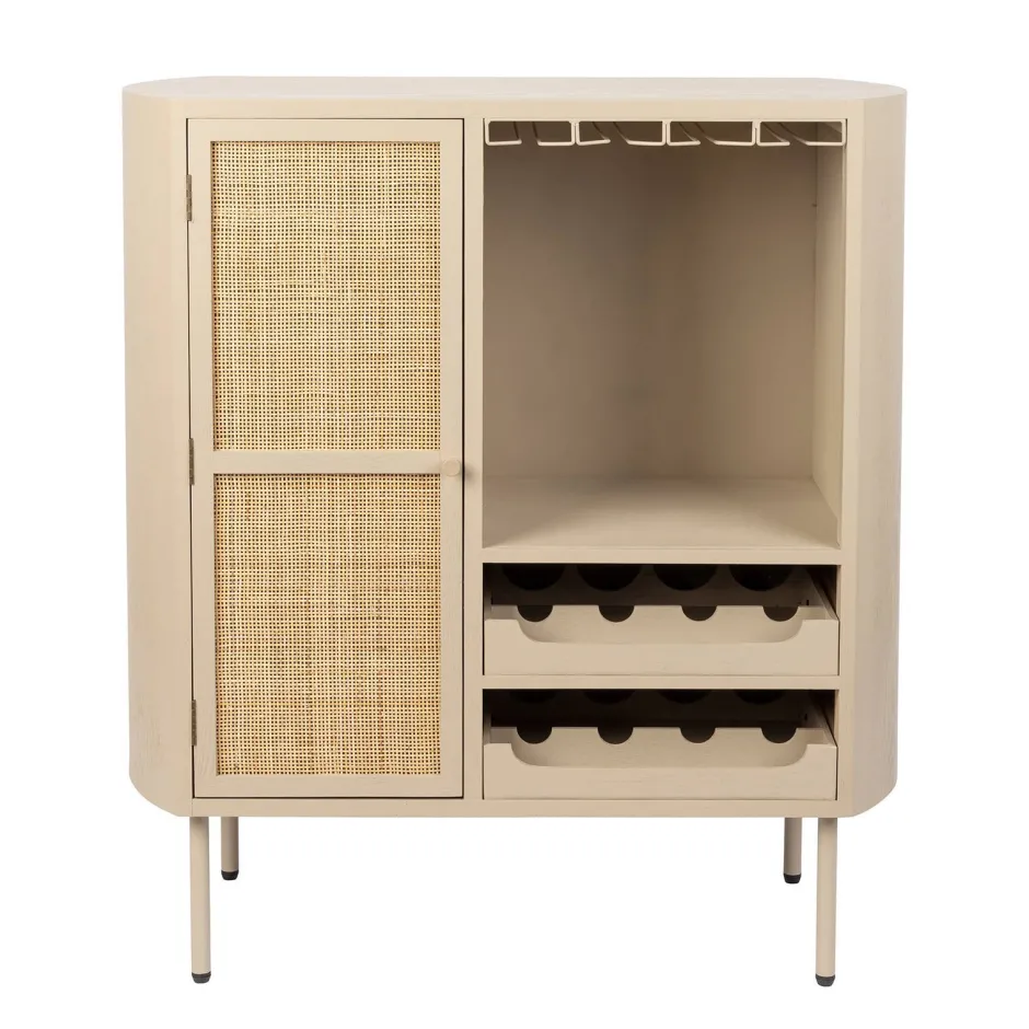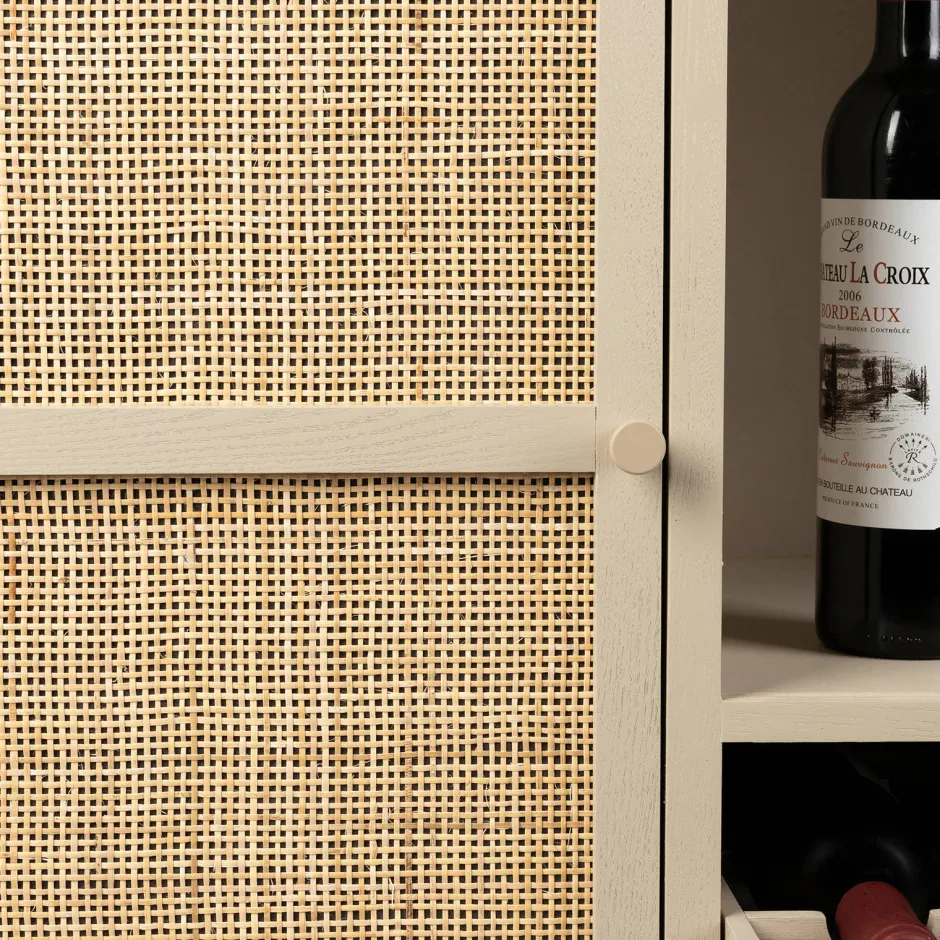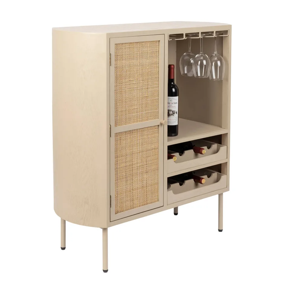 Voor De Echte Bourgondiers Onder Ons! De Sfeervolle Amaya Wijnkast Past Binnen De Japandi Stijl En Past In Ieder Interieur. Amaya Is Gemaakt Van Hout En Heeft Een Gevlochten Rattan Deurtje Voor Handige Opberggruimte. De Lichte Kleuren En Ronde Vormen Zorgen Voor Een Rustige, Serene Uitstraling. De Wijnkast Biedt Tevens Ruimte Voor Jouw Wijnflessen En Je Kunt Gemakkelijk Je Glazen Ophangen In Een Van De Vier Rijen.