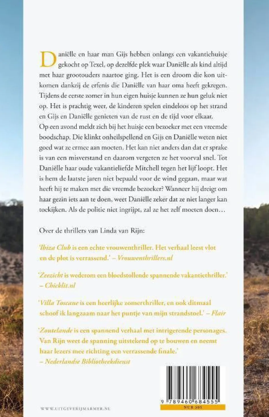 Danielle En Haar Man Gijs Hebben Onlangs Een Vakantiehuisje Gekocht Op Texel, Op Dezelfde Plek Waar Danielle Als Kind Altijd Met Haar Grootouders Naartoe Ging. Het Is Een Droom Die Kon Uitkomen Dankzij De Erfenis Die Danielle Van Haar Oma Heeft Gekregen. Tijdens De Eerste Zomer In Hun Eigen Huisje Kunnen Ze Hun Geluk Niet Op. Het Is Prachtig Weer, De Kinderen Spelen Eindeloos Op Het Strand En Gijs En Danielle Genieten Van De Rust En De Tijd Voor Elkaar.Op Een Avond Meldt Zich Bij Het Huisje Een Bezoeker Met Een Vreemde Boodschap. Die Klinkt Onheilspellend En Gijs En Danielle Weten Niet Goed Wat Ze Ermee Aan Moeten. Het Kan Niet Anders Dan Dat Er Sprake Is Van Een Misverstand En Daarom Vergeten Ze Het Voorval Snel. Tot Danielle Haar Oude Vakantieliefde Mitchell Tegen Het Lijf Loopt. Het Is Hem De Laatste Jaren Niet Bepaald Voor De Wind Gegaan, Maar Wat Heeft Hij Te Maken Met Die Vreemde Bezoeker? Wanneer Hij Dreigt Om Haar Gezin Iets Aan Te Doen, Weet Danielle Zeker Dat Ze Niet Langer Kan Toekijken. Als De Politie Niet Ingrijpt, Zal Ze Het Zelf Moeten Doen…
