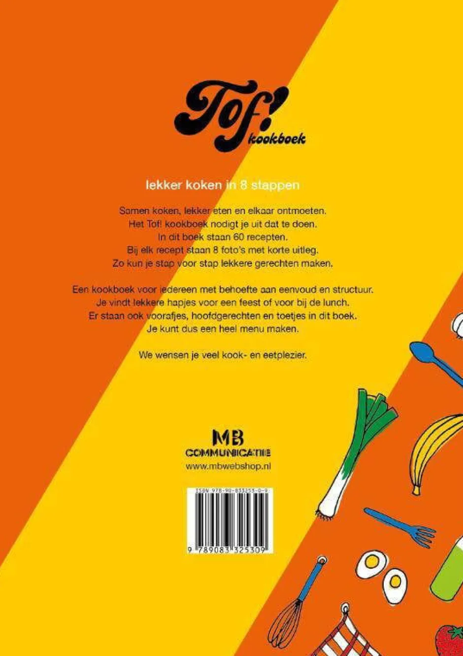 Lekker Koken In 8 Stappen.Het Vertrouwde Tof! Kookboek In Een Nieuw Jasje.Samen Koken, Lekker Eten En Elkaar Ontmoeten. Het Tof! Kookboek Nodigt Je Uit Dat Te Doen.In Dit Boek Staan 60 Recepten.Bij Elk Recept Staan 8 Foto’S Met Korte Uitleg.Zo Kun Je Stap Voor Stap Lekkere Gerechten Maken.Een Kookboek Voor Iedereen Met Behoefte Aan Eenvoud En Structuur.Je Vindt Lekkere Hapjes Voor Een Feest Of Voor Bij De Lunch.Er Staan Ook Voorafjes, Hoofdgerechten En Toetjes In Dit Boek. Je Kunt Dus Een Heel Menu Maken.We Wensen Je Veel Kook- En Eetplezier.