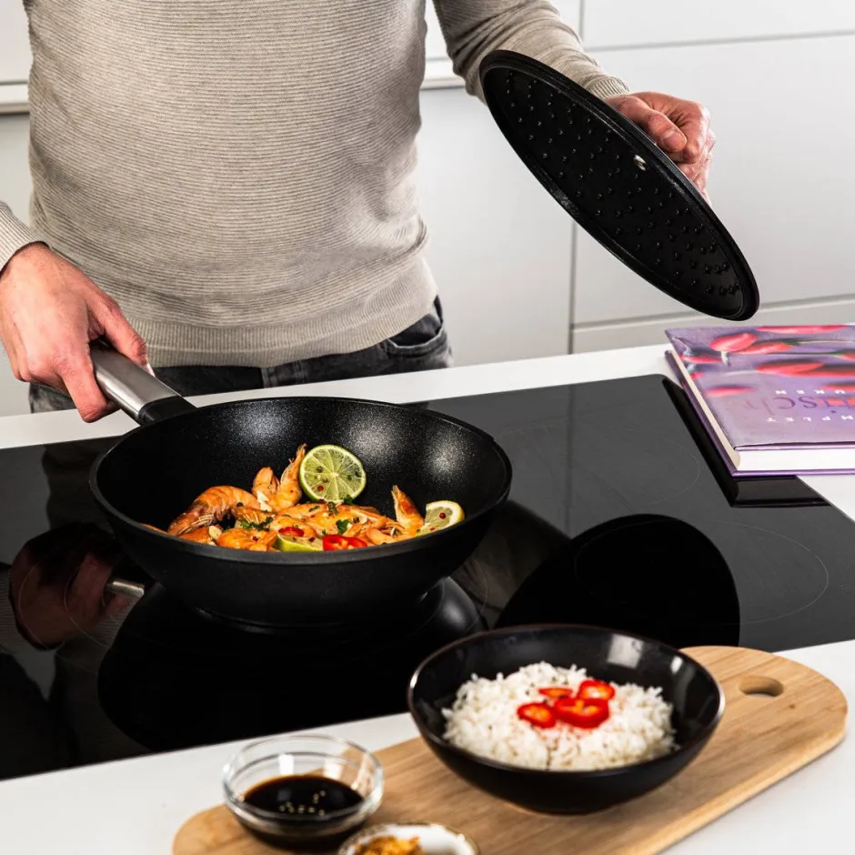 Westinghouse Braadpan Performance Blissful Black – O 24 Cm / 4.5 Liter, Westinghouse Braadpan Performance Blissful Black – O 28 Cm / 6.7 Liter, Westinghouse Hapjespan Performance Blissful Black – O 32 Cm / 5.8 Liter – Standaard Anti-Aanbaklaag, Westinghouse Wokpan Performance Blissful Black – O 28 Cm – Standaard Anti-Aanbaklaag, Westinghouse Koekenpan Performance Blissful Black – O 24 Cm – Standaard Anti-Aanbaklaag, Westinghouse Koekenpan Performance Blissful Black – O 28 Cm – Standaard Anti-Aanbaklaag, Westinghouse Grillpan Performance Blissful Black – 28 X 28 Cm – Standaard Anti-Aanbaklaag En Westinghouse Steelpan Performance Blissful Black – O 18 Cm / 1.9 Liter, Allemaal In Zwart Met Een Standaard Anti-Aanbaklaag. Ideaal Voor Het Braden, Bakken, Wokken, Grillen En Maken Van Sauzen, Soepen En Marinades. Dankzij De Roestvrijstalen Handvat Houd Je Je Handen Veilig.