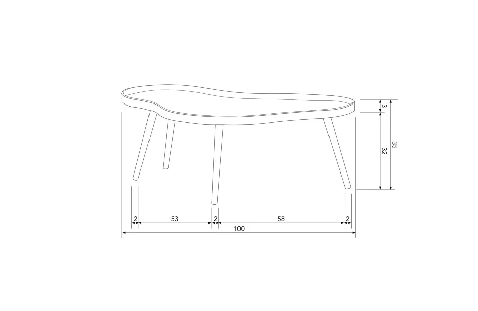 Deze Slanke Bijzettafel Heeft Een Hoogte Van 35 Cm En Is Ongeveer 100 Cm Breed En 58 Cm Diep. Het Tafelblad Beschikt Over Een Opstaande Rand Van 2 Cm Hoog. De Poten Hebben Een Hoogte Van 32 Cm En Lopen Van De Bovenzijde 3 Cm Taps Toe Naar Onderen Tot 1,5 Cm. De Bijzettafel Heeft Een Draagkracht Van 10 Kg Wanneer Gelijkmatig Verdeeld. Het Tafeltje Weegt Zelf Een Kleine 5 Kg.