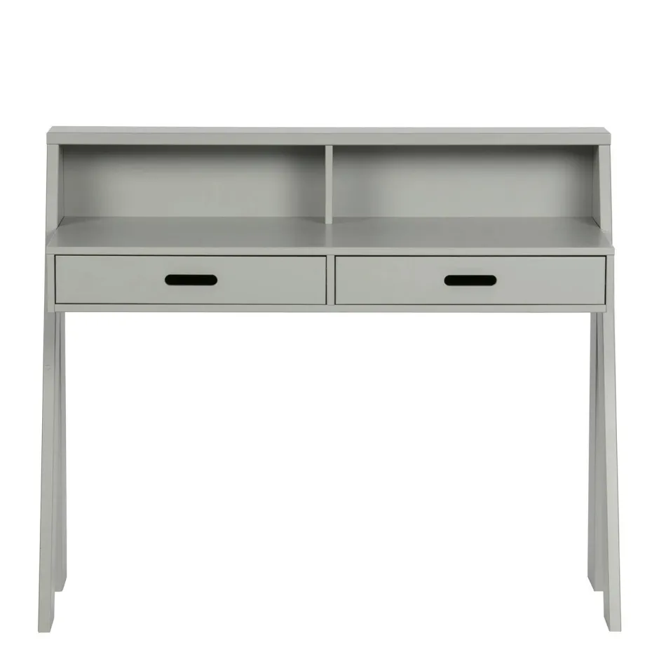 Dit Frisse, Moderne Bureau Connect Uit De Collectie Van Het Nederlandse Merk Woood Is Gemaakt Van Massief, Fsc Gecertificeerd, Grenenhout Voorzien Van Een Beton Grijze Afwerking. Het Bureau Beschikt Over Twee Lades (Hxbxd) 6.5X47.5X40 Cm Met Uitgefreesde En Afgeronde Handvaten. Handig Voor Het Opbergen Van Je Huiswerk Of Andere Zaken Die Je Liever Niet In Het Zicht Hebt Liggen.
