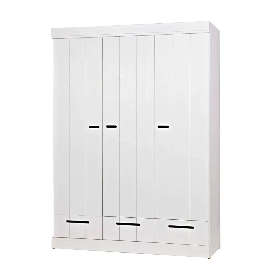 Woood Connect Kast 3-Deurs Met Lade – Grenen – Wit – 195X140X53 Best