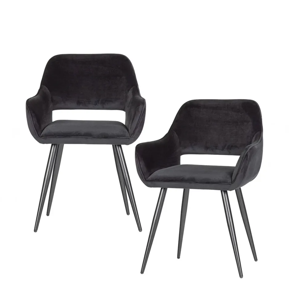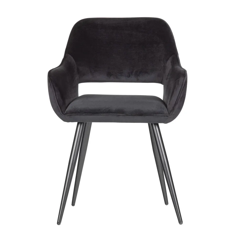 De Eigentijdse Woood Eetkamerstoel Jelle In Fluweel Gestoffeerd In De Kleur Zwart Heeft Een Opvallend Gevormde Zitting. Dit Is Niet Alleen Fraai Van Uiterlijk, Maar De Stoel Zit Ook Heerlijk. De Afmetingen Zijn (Hxbxd): 80X60X57 Cm. De Zithoogte Is 49 Cm, Zitdiepte 45 Cm En Zitbreedte 42 Cm. De Comfortabele Armleggers (Hoogte Van De Vloer Gemeten Tot Bovenkant Armlegger 65 Cm) Verhogen Het Zitcomfort. Deze Eigentijdse Eetkamerstoel Jelle Past In Elke Woonstijl. Met Zijn Fraaie Vormgeving En Zwart Gelakte Metalen Onderstel Is Deze Stoel Helemaal Van Nu.