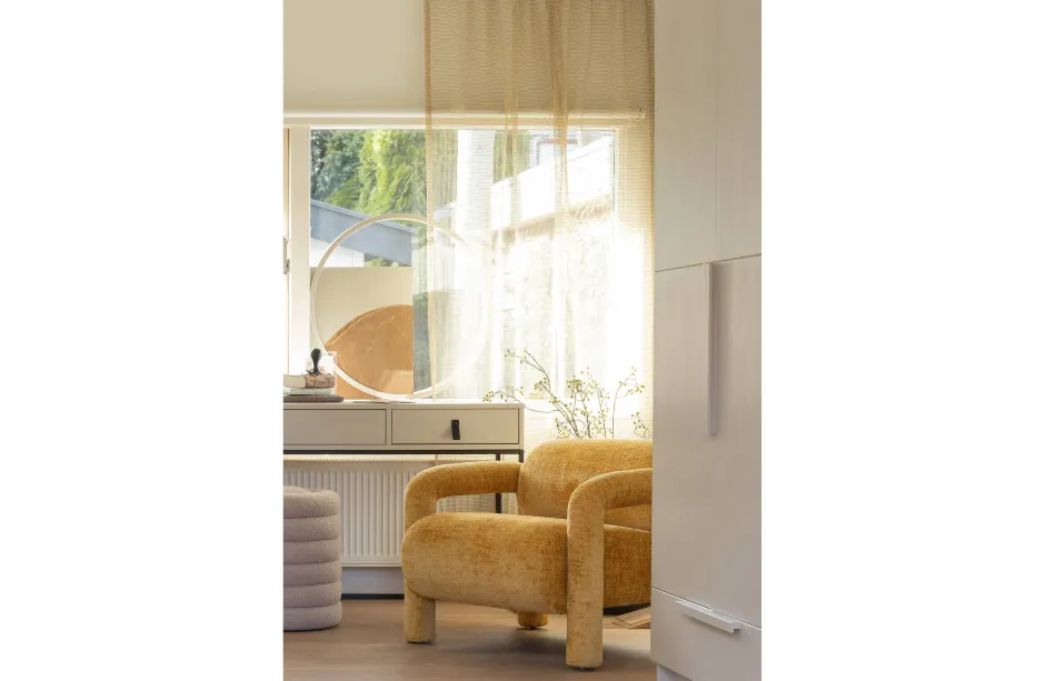 Lenny Is Bekleed Met Grove Velvet Met Onregelmatig Polenpatroon. Onze Sissy Grove Velvet Heeft Een Opvallende Structuur, Wat Zorgt Voor Een Luxe Uitstraling En Bijzondere Glans. De Zachte Stof Is Gemaakt Van 100% Polyester, Wat Het Onderhoud Zeer Gemakkelijk Maakt. De Velvet Met Grove Structuur Heeft Een Martindale Van 40.000 En Is Dus Goed Bestand Tegen Lussen, Verkleuring En Slijtage.