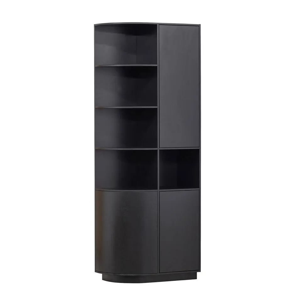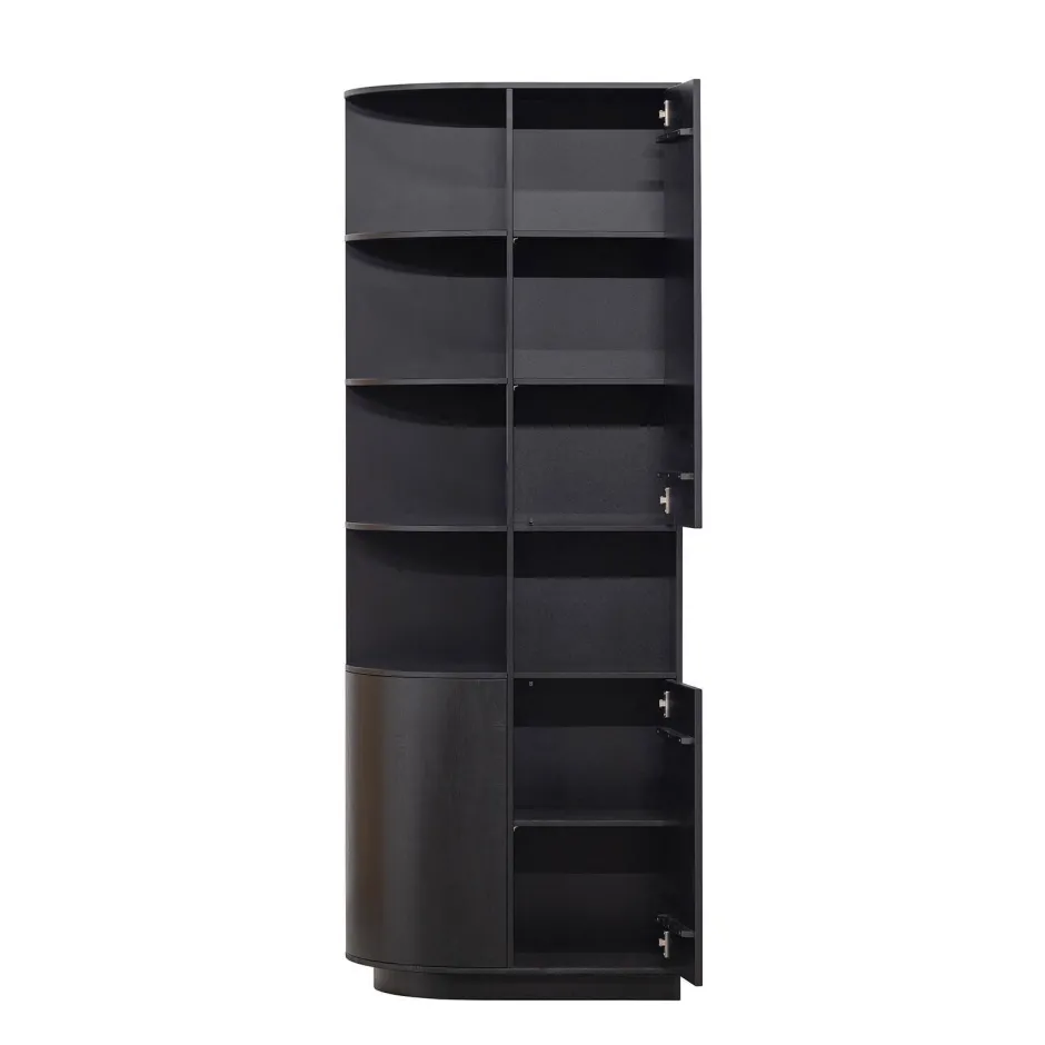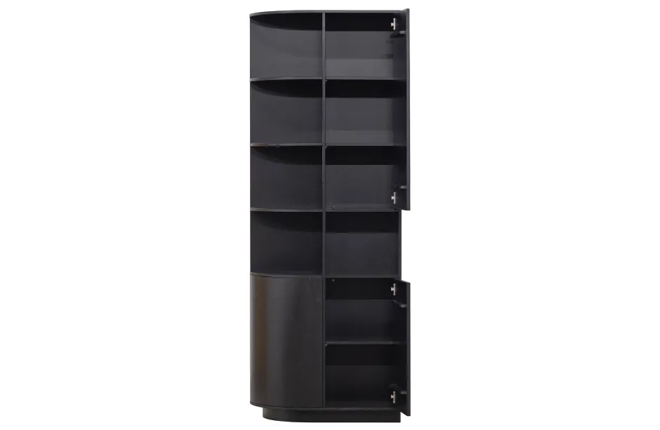De Finca Opbergkast Met Rond Element Is Een Waar Pronkstuk In De Woonruimte. De Open Vakken Zijn Gelijkmatig Ingedeeld Voor Het Presenteren Van Jouw Mooiste Woondecoratie. De Drie Deuren Houden Nog Eens Een Ruime Opbergruimte Uit Het Zicht. De Vakken Hebben Een Hoogte Van 32 Cm En Een Diepte Van 37 Cm. De Onderrand Van De Opbergkast Laat 7 Cm Ruimte Over Aan De Voorzijde, Hierdoor Lijkt Het Meubel Te Zweven.