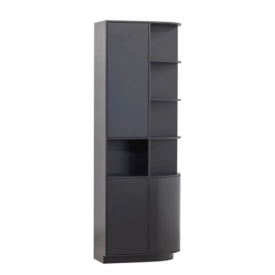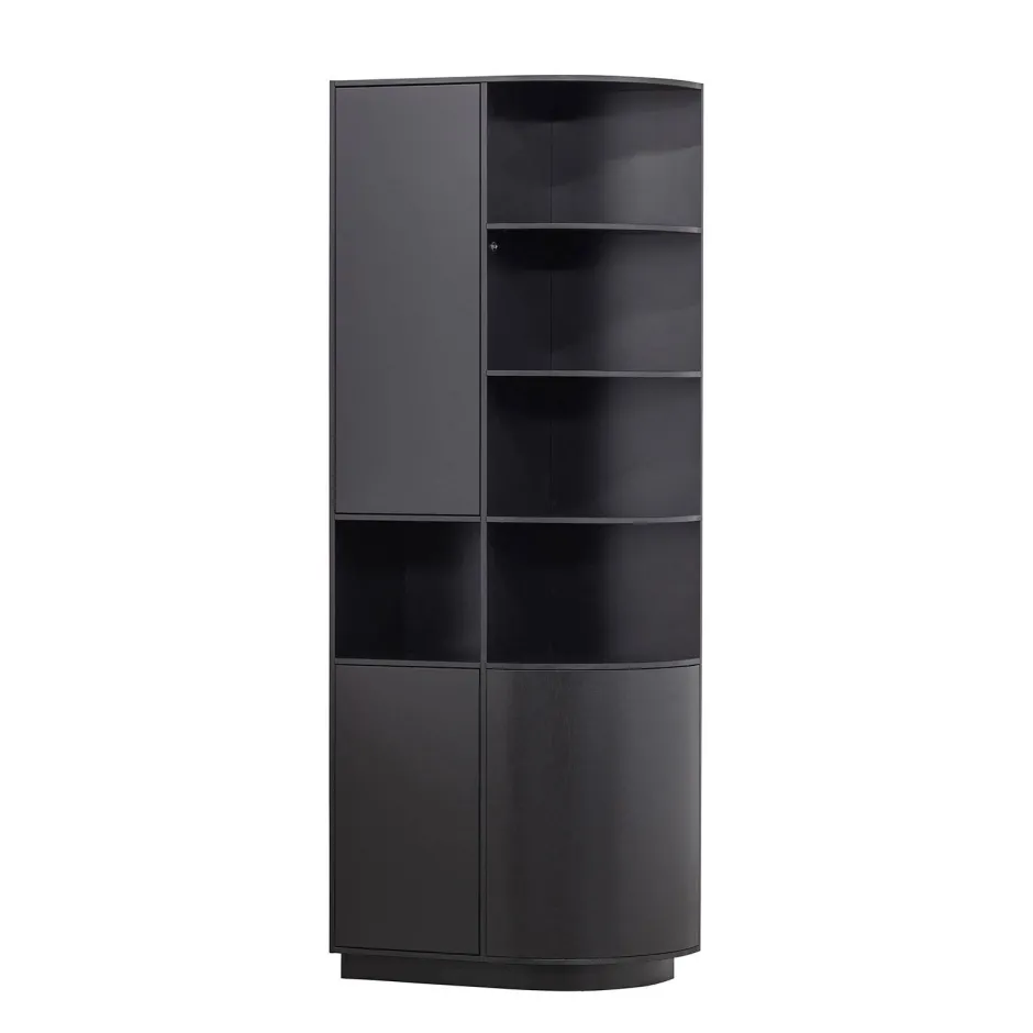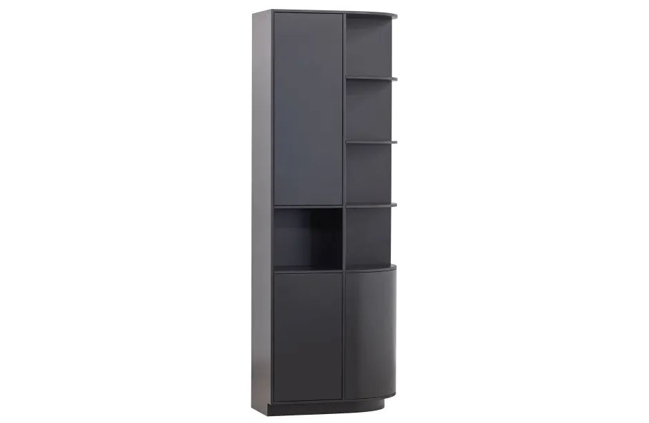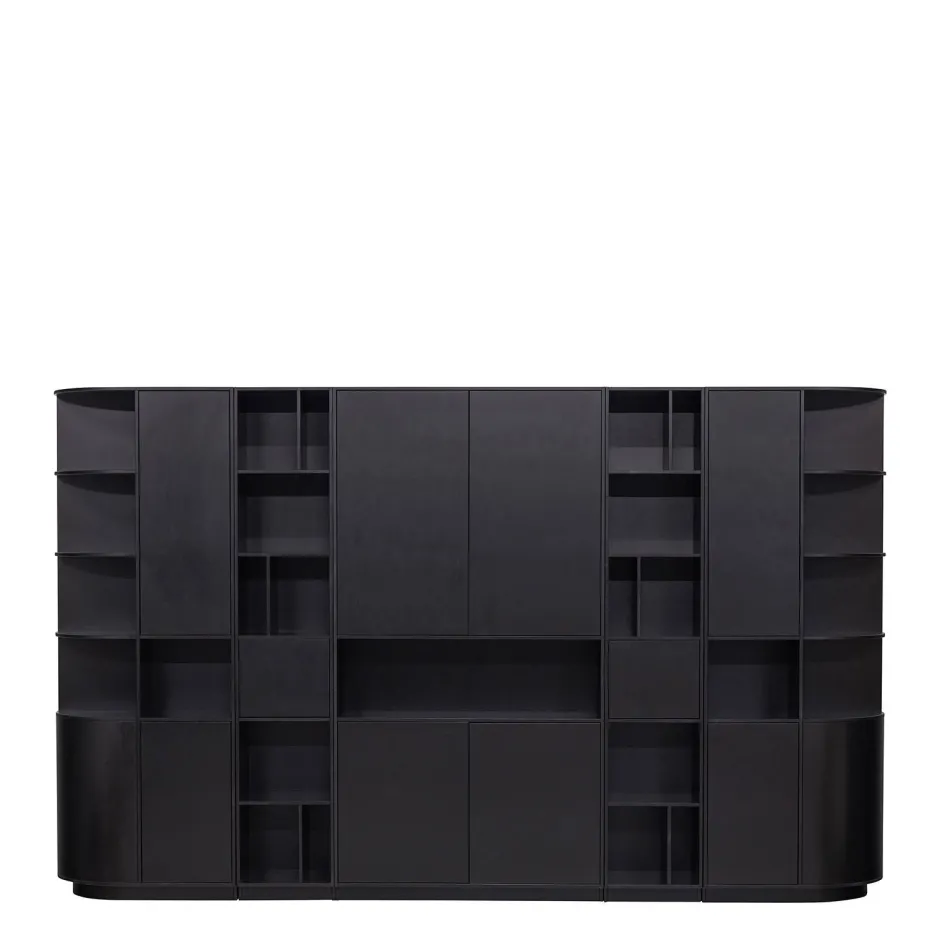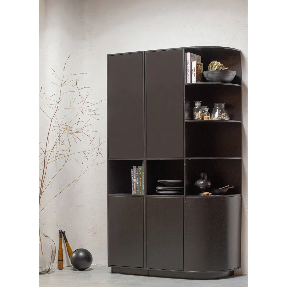 De Finca Opbergkast Met Rond Element Is Een Waar Pronkstuk In De Woonruimte. De Open Vakken Zijn Gelijkmatig Ingedeeld Voor Het Presenteren Van Jouw Mooiste Woondecoratie. De Drie Deuren Houden Nog Eens Een Ruime Opbergruimte Uit Het Zicht. De Vakken Hebben Een Hoogte Van 32 Cm En Een Diepte Van 37 Cm. De Onderrand Van De Opbergkast Laat 7 Cm Ruimte Over Aan De Voorzijde, Hierdoor Lijkt Het Meubel Te Zweven.