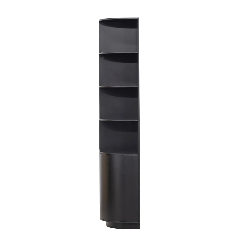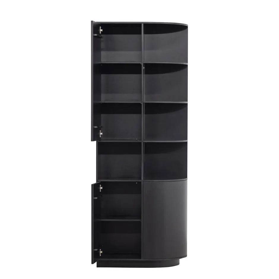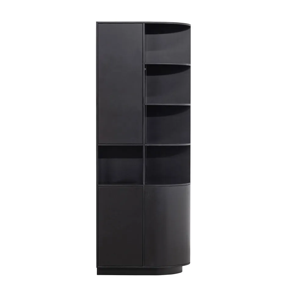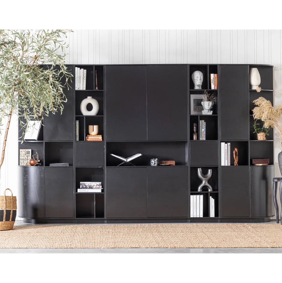 De Finca Opbergkast Met Rond Element Is Een Waar Pronkstuk In De Woonruimte. De Open Vakken Zijn Gelijkmatig Ingedeeld Voor Het Presenteren Van Jouw Mooiste Woondecoratie. De Drie Deuren Houden Nog Eens Een Ruime Opbergruimte Uit Het Zicht. De Vakken Hebben Een Hoogte Van 32 Cm En Een Diepte Van 37 Cm. De Onderrand Van De Opbergkast Laat 7 Cm Ruimte Over Aan De Voorzijde, Hierdoor Lijkt Het Meubel Te Zweven.