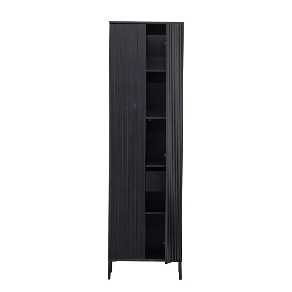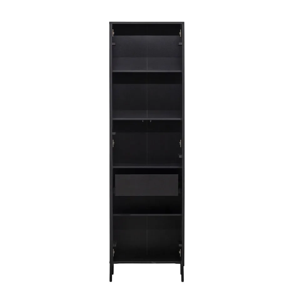 Onze Succesvolle Gravure Serie In Een Nieuw Jasje! Deze Gravure New Hoge Kast Uit De Collectie Van Het Nederlandse Interieurmerk Woood, Is Een Aanwinst Voor Opruimliefhebbers. Gravure New Hoge Kast Is Uitgevoerd In Grenenhout En Afgewerkt Met Een Diepzwarte Lak. Het Interieur Is Vervaardigd Uit Spaanplaat In Zwart. De Poten Zijn Van Metaal Met Een Zwarte Coating. De Gravure New Hoge Kast Beschikt Over Twee Deuren Met Een Geluidloos Push-To-Open Systeem En Een Handige Lade.