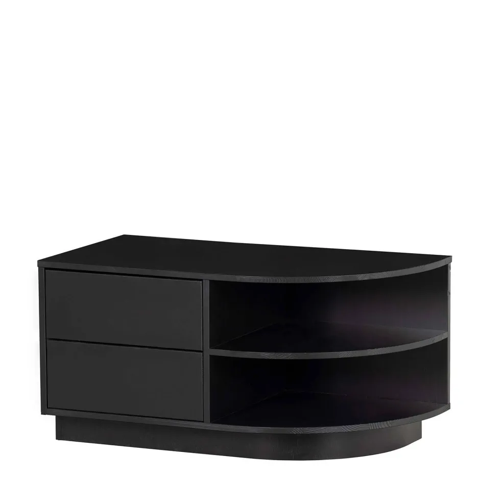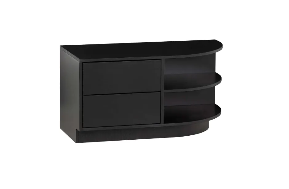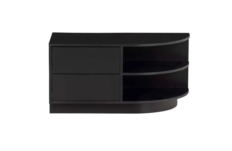 Het Finca Tv Meubel Met Rond Element Is Een Waar Pronkstuk In De Woonruimte. De Open Vakken Bieden Genoeg Ruimte Voor Het Presenteren Van Jouw Mooiste Woondecoratie. De Twee Laden Houden Nog Eens Een Ruime Opbergruimte Uit Het Zicht. De Onderrand Van Het Tv Meubel Laat 7 Cm Ruimte Over Aan De Voorzijde, Hierdoor Lijkt Het Meubel Te Zweven.