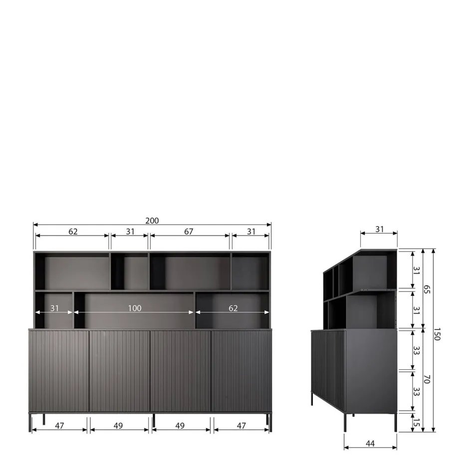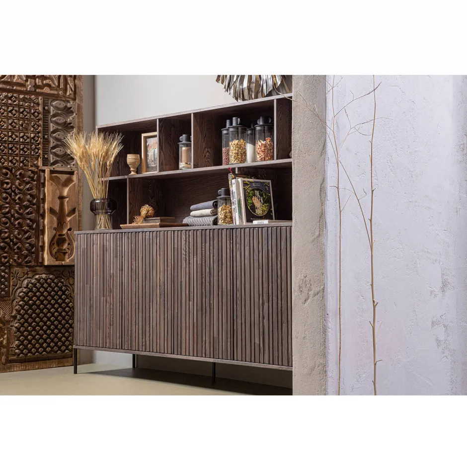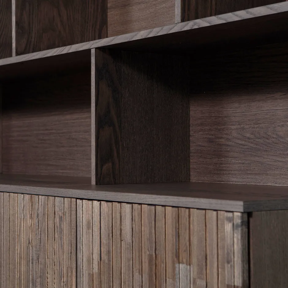 – Royale Wandkast- Gemaakt Van Essenhout [Fsc], Essen Fineer En Spaanplaat- Een Stijlvolle Presenteerplaats Voor Jouw Mooiste Accessoires- H 150 Cm X B 200 Cm X D 44 Cmeen Unieke Aanvulling Op Het New Gravure Dressoir, Uit De Collectie Van Het Nederlandse Interieurmerk Woood, De New Gravure Wandkast. De Wandkast Is Uitgevoerd In Essen Fineer Met Deuren Van Essen Vingerlas En Afgewerkt Met Een Bruine Espressokleurige Beits. Het Interieur Is Gevormd Uit Zwartgekleurd Spaanplaat. Presenteer Jouw Mooiste Woonitems In De Vakkenkast En Ontdek Een Zee Aan Opbergruimte Achter De Vier Relief Deuren.Waarschuwing Kantelgevaar!Voor Kasten Hoger Dan 70 Cm Raden We Aan Om Extra Aandacht Te Besteden Aan De Muurbevestiging. De Montage Van De Valpreventie Voorkomt Ongelukken En Behoudt De Kast Voor Kantelen.Materiaalessenhout Is Een Iets Zachte Houtsoort Met Een Strakke, Rechte Nerf. Items Uit Onze Collecties Zijn Bekleed Met Een Essenhout Fineer, Deze Stroken Worden Verlijmd Op Een Gladde Houtsoort En Vervolgens Afgewerkt Met Een Beits En Transparante, Beschermende Coating.Afmetingen- Hoogte: 150 Cm- Breedte: 200 Cm- Diepte: 44 Cm- Diepte Opzetkast: 30 Cm- Afmeting Bovenste Vakkenrij: H 31 Cm / B ~ 60 – 31 Cm / D 28 Cm- Afmeting Onderste Vakkenrij: H 31 Cm / B 31/100/62 Cm / D 28 Cm- Plankdikte: 2,5 Cm- Afmeting 4X Kastdeur: H 66 Cm / B 50 Cm / D 2 Cmde Dichte Kast Beschikt Over Vier Uitneembare Legplanken Die Tevens In Hoogte Verstelbaar Zijn. – Afmeting Dichte Vakken: H 32,5 Cm / B 47,5 / D 41 Cm- Poothoogte: 15 Cm – Pootdikte: 2 Cm- Draaggewicht: 15 Kg Per Plank- Gewicht: 98 Kgonderhoudessenhout Fineer Is Eenvoudig Te Reinigen Met Een Lichtvochtige, Schone Doek. Nadrogen Zorgt Voor Een Streeploos Resultaat. Het Verlijmde Fineer Kan Gaan Vervormen Bij Aanraking Met Hitte En/Of Vocht. Hierom Is Het Aangeraden Om Gefineerde Meubelen Te Beschermen Middels Onderzetters En Te Allen Tijde Binnenshuis Te Plaatsen. Essenhout Fineer Vereist Geen (Her)Behandeling.Leveringcombineer Je Meerdere New Gravures Naast Elkaar? Verbind Beide Meubels Dan Eenvoudig Met Enkel Een Poot Voor En Een Poot Achter, Stijlvol! De Wandkast Wordt In Meerdere Pakketten Geleverd En Is Eenvoudig Te Monteren Aan De Hand Van De Bijleverde Montagehandleiding. Plaats Voor Het Beschermen Van Harde Vloeren Viltglijders Onder De Poten Van De New Gravure Kasten.