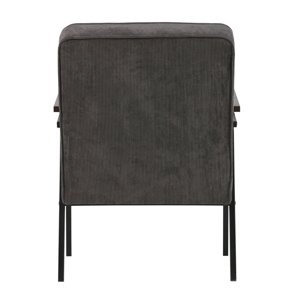 Woood Sally Fauteuil 87X65X82 (Hxbxd) Is Een Comfortabele Fauteuil. De Sally Fauteuil Is Gestoffeerd Met Een Stevige Ribcord Stof In De Kleur Antraciet En Heeft Een Zwart Gelakte Metalen Frame. De Bruin Gelakte Houten Armleggers Geven Deze Fauteuil Een Stoer, Trendy En Casual Uiterlijk.