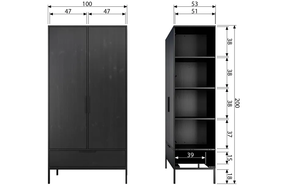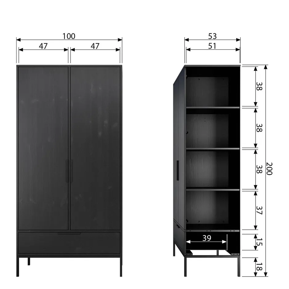 Kast Adam Is Verkrijgbaar In De Kleuren Zwart En Staalgrijs.