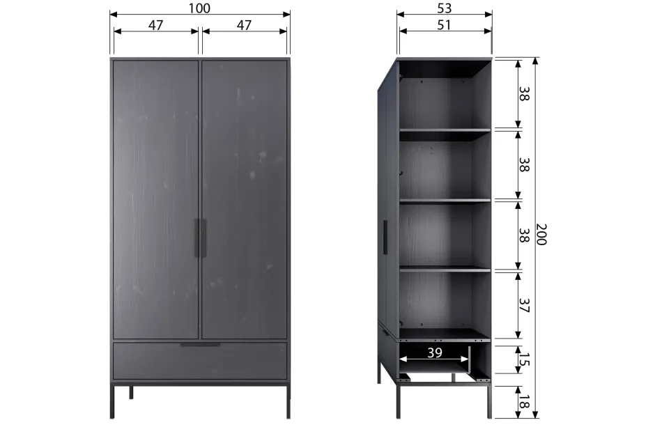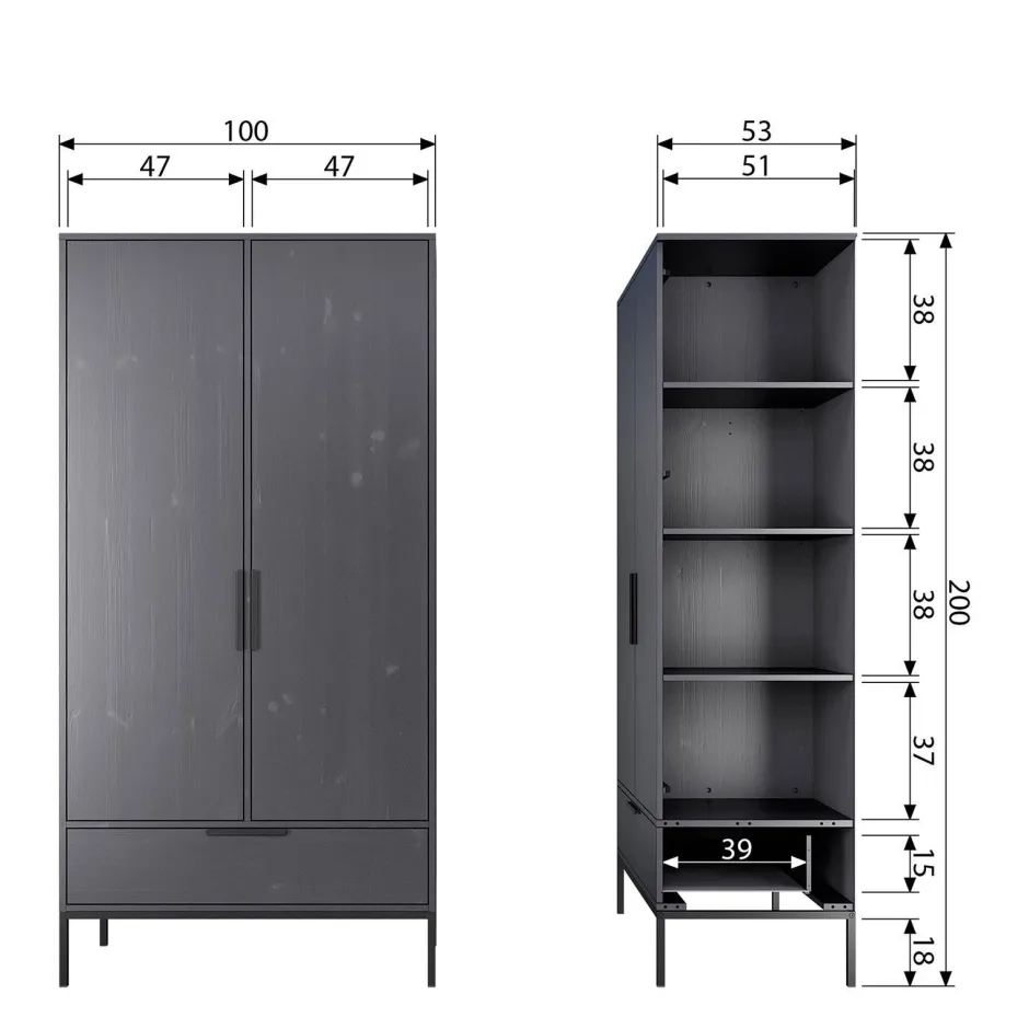 Kast Adam Is Verkrijgbaar In De Kleuren Zwart En Staalgrijs.