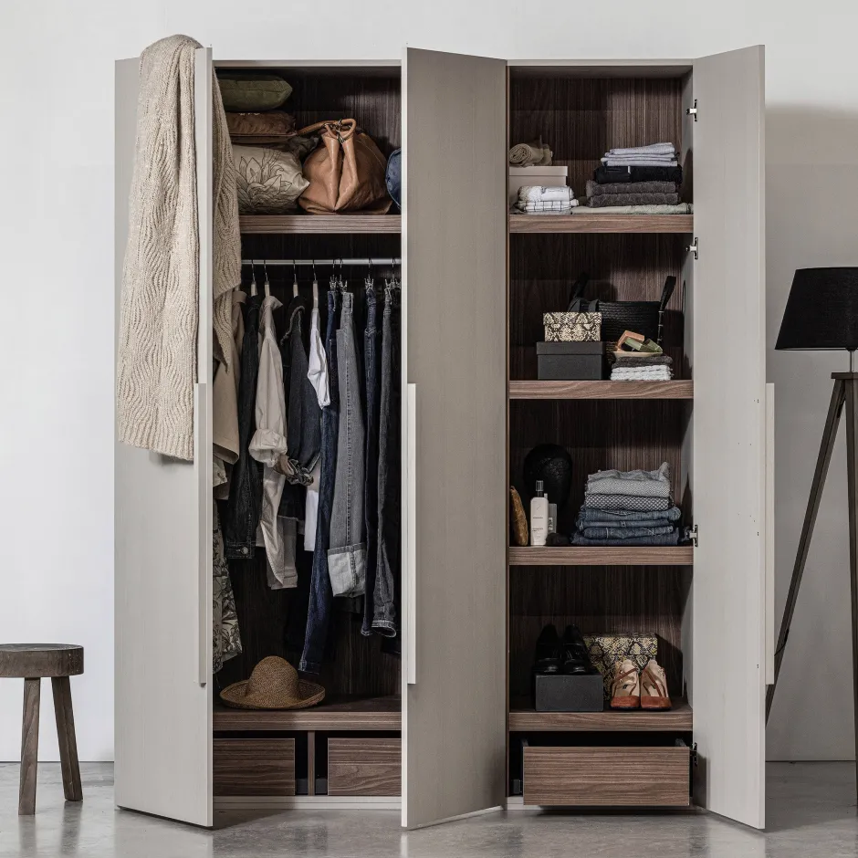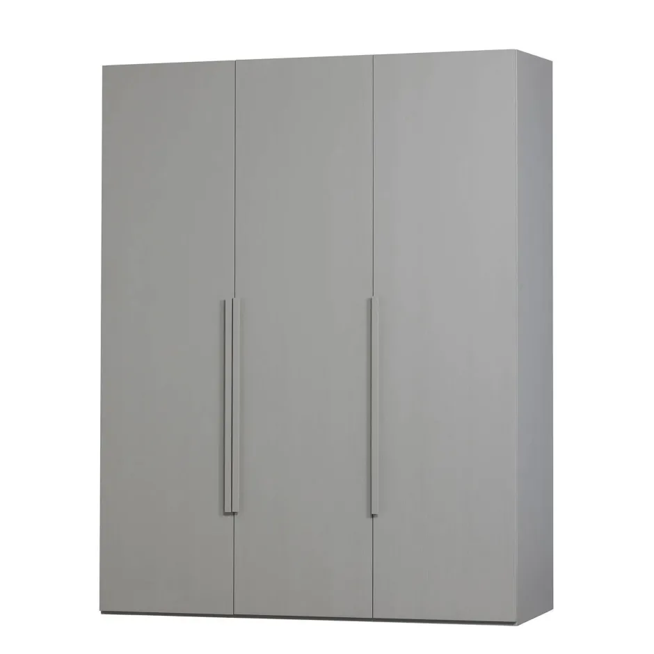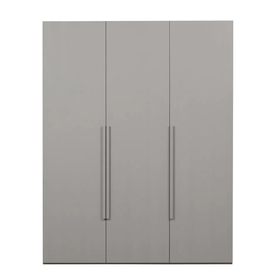 Deze 3-Deurs Garderobekast Is Gemaakt Van Sterk Notenhout En Uitgevoerd In Een Matte Lichtgrijze Kleur.