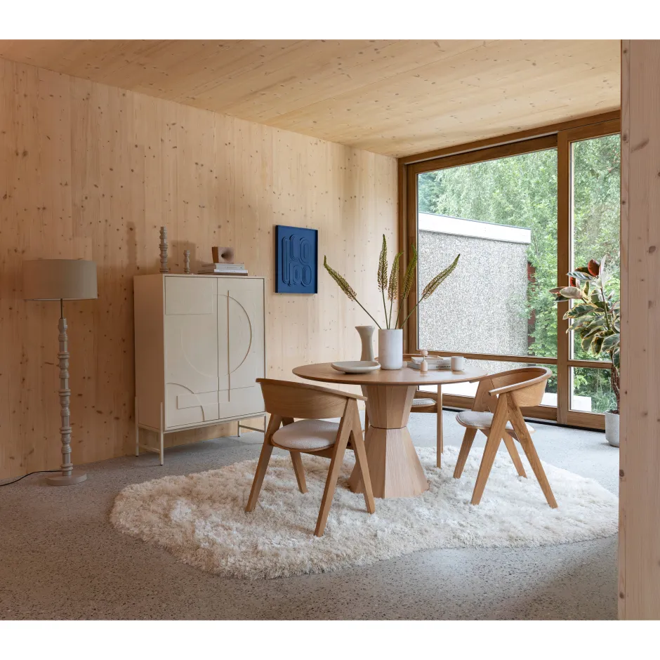 Ervaar Hoogstaand Tafelen Zoals Nooit Tevoren Met De Ronde Lotus Tafel Van Zuiver. Dit Opmerkelijke Meubel Is Zorgvuldig Ontworpen Om Een Stijlvolle En Elegante Sfeer Te Creeren, Perfect Voor Mensen Die Op Zoek Zijn Naar Een Verfijnde Eetervaring. De Lotus Tafel Biedt Plaats Aan Maximaal 4 Personen En Zorgt Ervoor Dat Je Gasten In Alle Comfort Kunnen Zitten. De Warme En Uitnodigende Tinten Creeren Een Ambiance Die Uitnodigt Tot Gezamenlijke Momenten En Onvergetelijke Gesprekken.