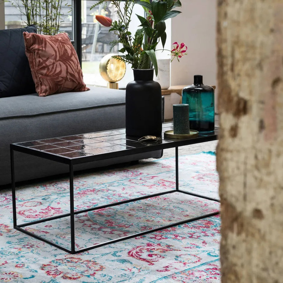 Stijl Jouw Interieur Af Met Deze Glazed Salontafel Van Het Merk Zuiver. De Salontafel Heeft Aan De Bovenkant Tegels Van Keramiek, Waardoor Deze Een Luxe Uitstraling Heeft En Ook Nog Eens Goed Schoon Te Maken Is. De Poten Zijn Gemaakt Van Een Zwart, Stalen Frame.
