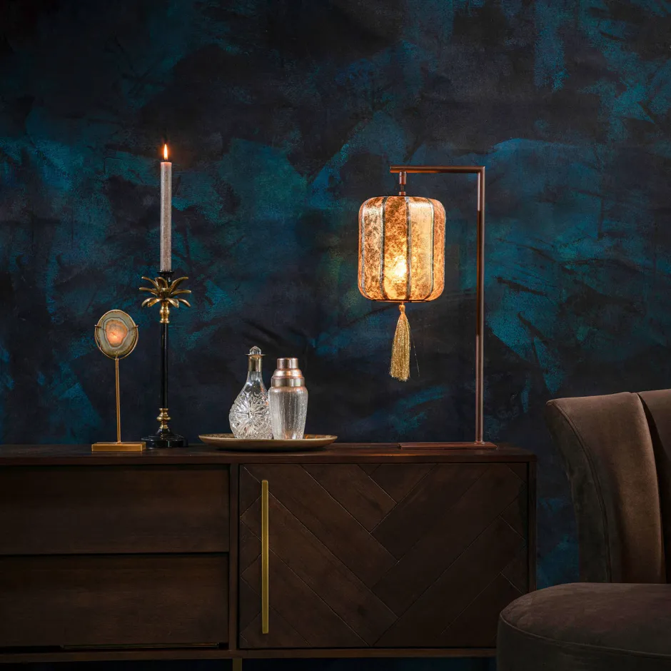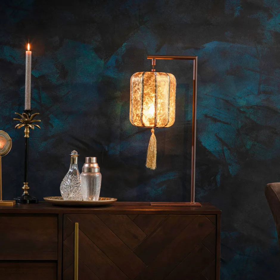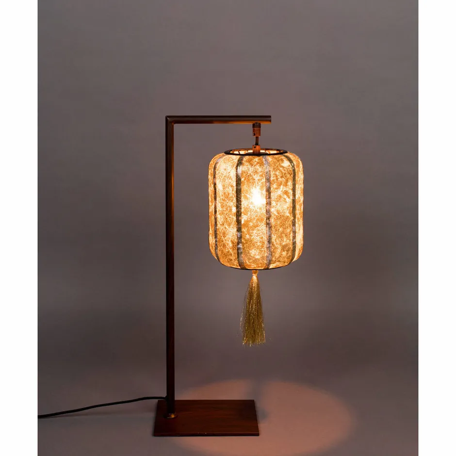Tafellamp Suoni Van Dutchbone Geeft De Hoofdrol Aan Een Chinese Lantaarn. De Lampion Aan Deze Originele Tafellamp In Twee Kleuren, Dieprood Of Met Een Goudkleurige Coating. Beide Staan Garant Voor Een Warm Gekleurd Licht. De Chinese Lantaarns Zijn Voorzien Van Een Vrolijk, Decoratief Kwastje Onder Aan De Kap.