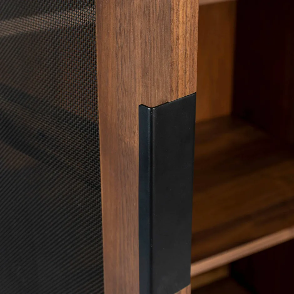 Deze Prachtige Vitrinekast Is Van Het Merk Zuiver. De Vitrinekast Heeft Een Mooie Afwerking Van Walnootfineer En Staat Op Strakke Stalen Poten. Het Meest Uniek Aan Dit Dressoir Zijn De Deuren. De Deuren Zijn Afgewerkt Met Fijn Metalen Gaas, Hierdoor Zijn De Deuren Een Klein Beetje Transparant. Vitrinekast Hardy Staat Prachtig In Ieder Interieur En Zal Sowieso De Eyecatcher In Jouw Woonkamer Worden.